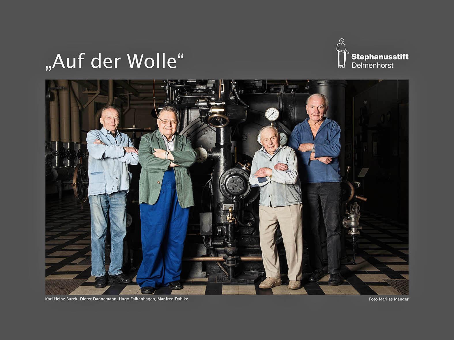 Delmenhorst, 06.12.2017 - Ein wenig stolz ist der Einrichtungsleiter Axel Stellmann auf den neuen Kalender, den die Fotografin Marlies Menger zusammen mit Senioren des Altenpflegeheimes Stephanusstift erstellt hat. Der Kalender mit dem Titel "Auf der Wolle" ist ab sofort im Stephanusstift zu bekommen. Die großformatigen Bilder des Kalenders im DinA3-Format zeigen die Senioren im Ambiente des Nordwolle Museums. Einen Tag lang haben die Senioren in historischer Kleidung Modell gestanden. An der Spinnmaschine, in der Wäscherei, zwischen Wollesäcken, an der Dampfmaschine und in der Bibliothek sind schöne Fotos entstanden, die die Vergangenheit lebendig werden lassen.