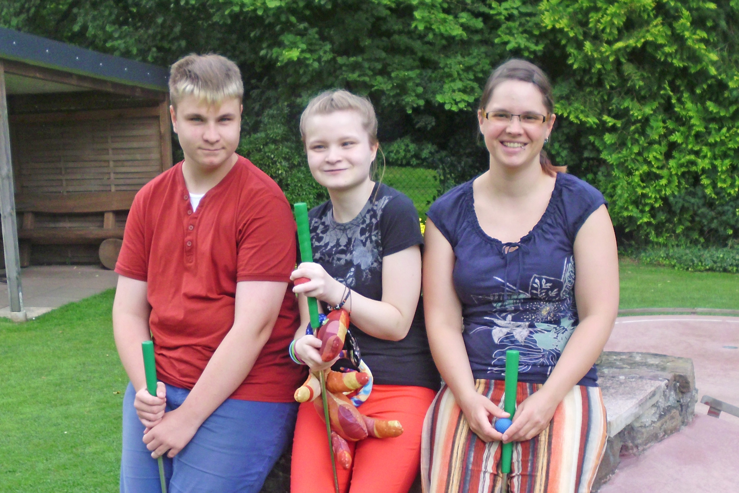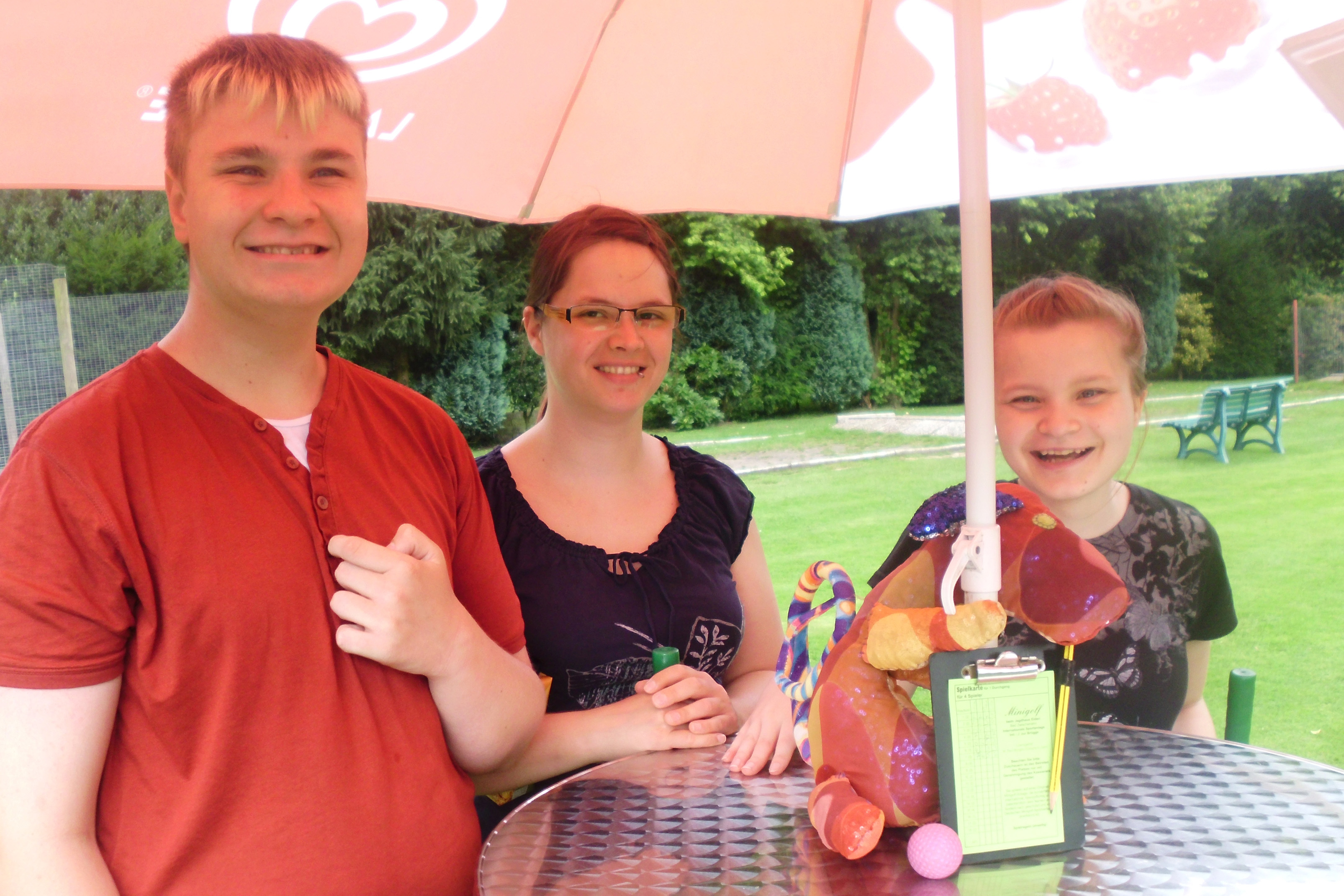 Das Kiola-Tier wirbt für Errichtung eines Hauses zum Kurzzeitwohnen für Kinder und Jugendliche mit Beeinträchtigungen, die normalerweise zu Hause wohnen. Damit Eltern zeitweise von der Rund-um-die-Uhr-Pflege entlastet werden, braucht es einen Einrichtung, die die Behinderten aufnehmen kann und ihnen eine ebenso gute Pflege und Betreuung bietet. Statt einer Fahrt nach Hamburg hatten sich die Schüler den Besuch eines Minigolfplatzes gewünscht. Kiola rundete den Nachmittag mit einem großen Eisbecher und dem Besuch im Schnellrestaurant ab. Das Turnier mit dem kleinen Minigolfball hat Jerome dann übrigens haushoch für sich entschieden.
