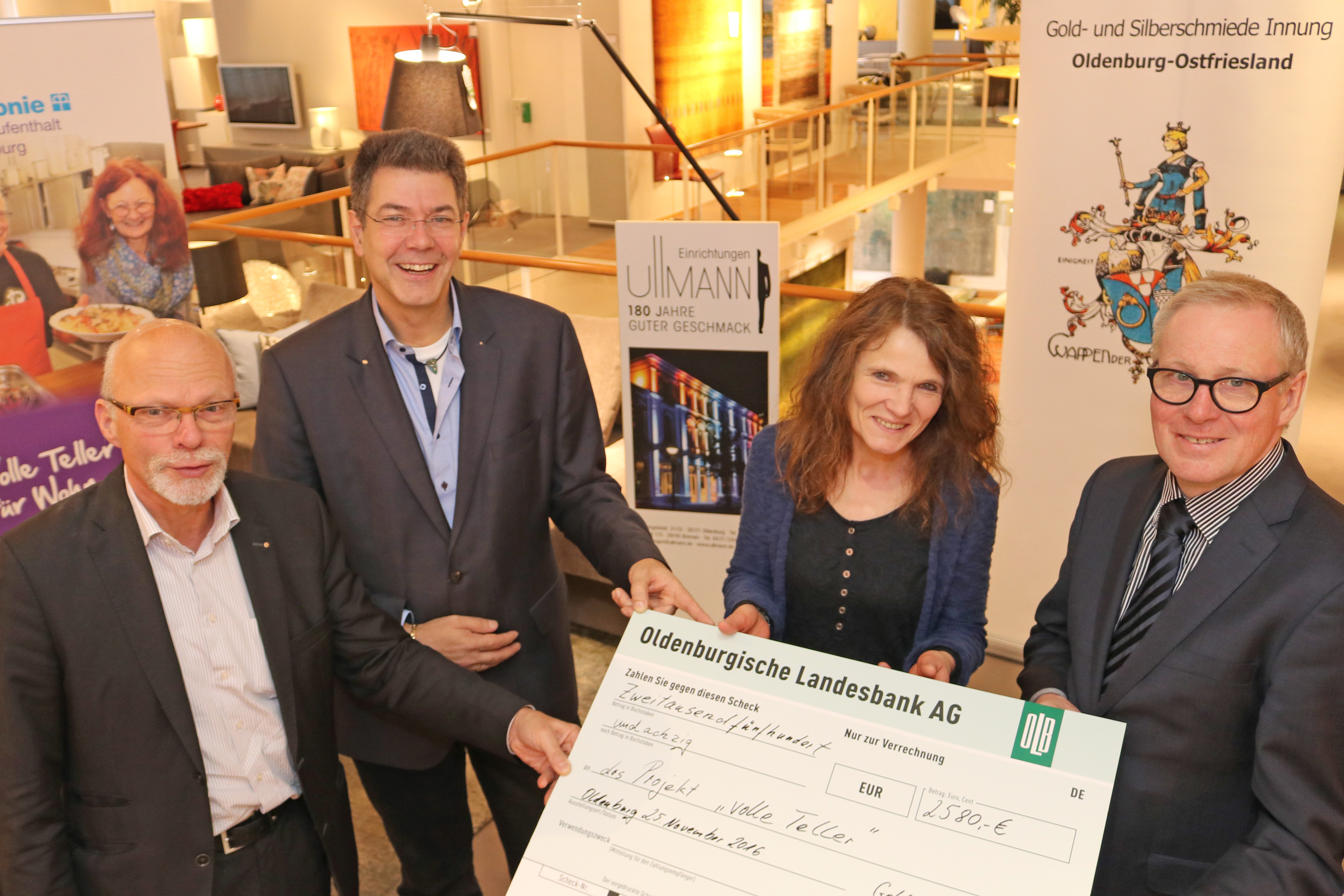 Oldenburg, 25.11.2016 - 2580,- hat eine Aktion der Gold- und Silberschmiede Innung Oldenburg-Ostfriesland erbracht. Mit dem Geld wird die Arbeit der Küche im Tagesaufenthalt abgesichert. Das Mittagsangebot wird stark nachgefragt, muss aber ohne öffentliche Zuschüsse auskommen. Deswegen sind Spenden sehr willkommen.
