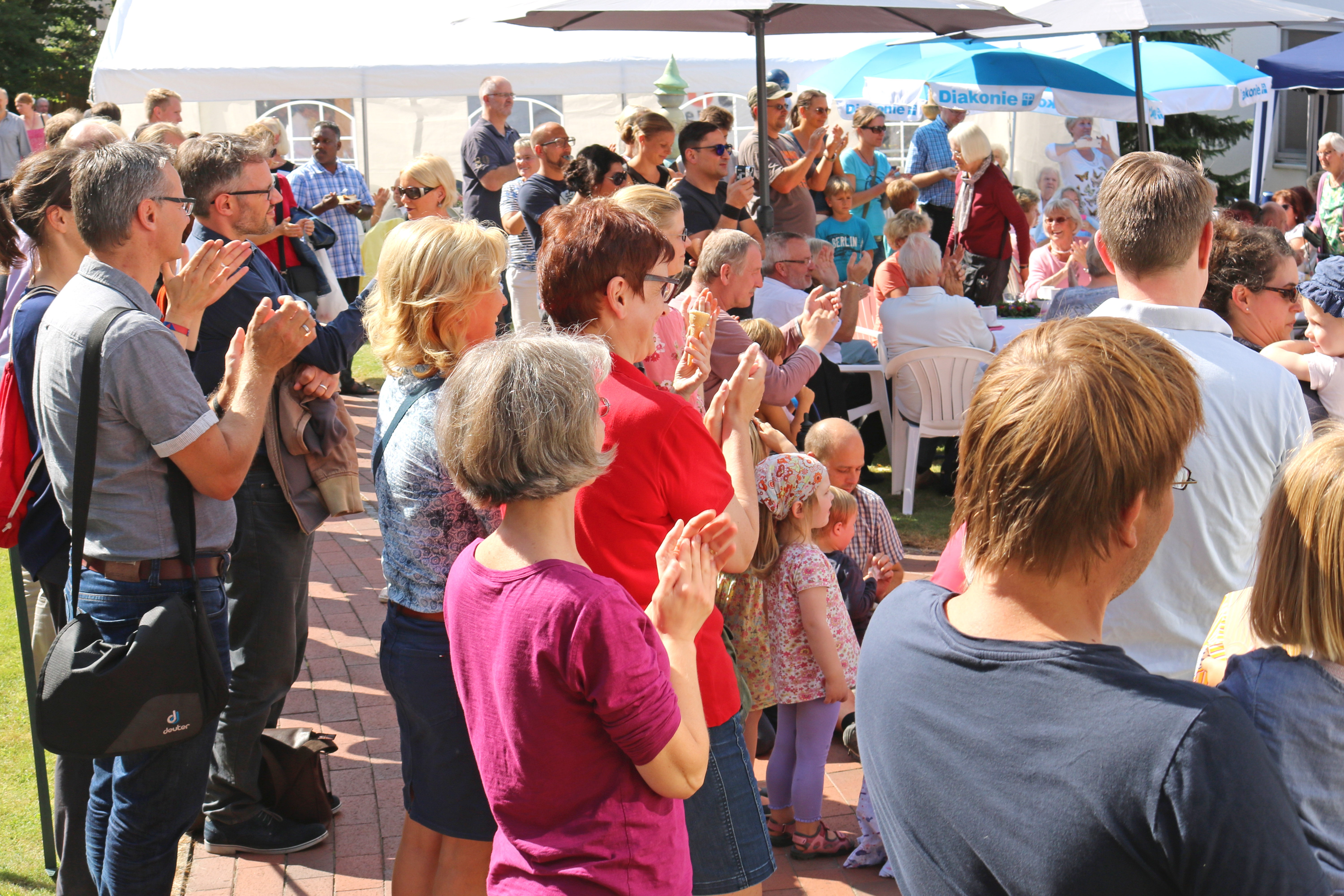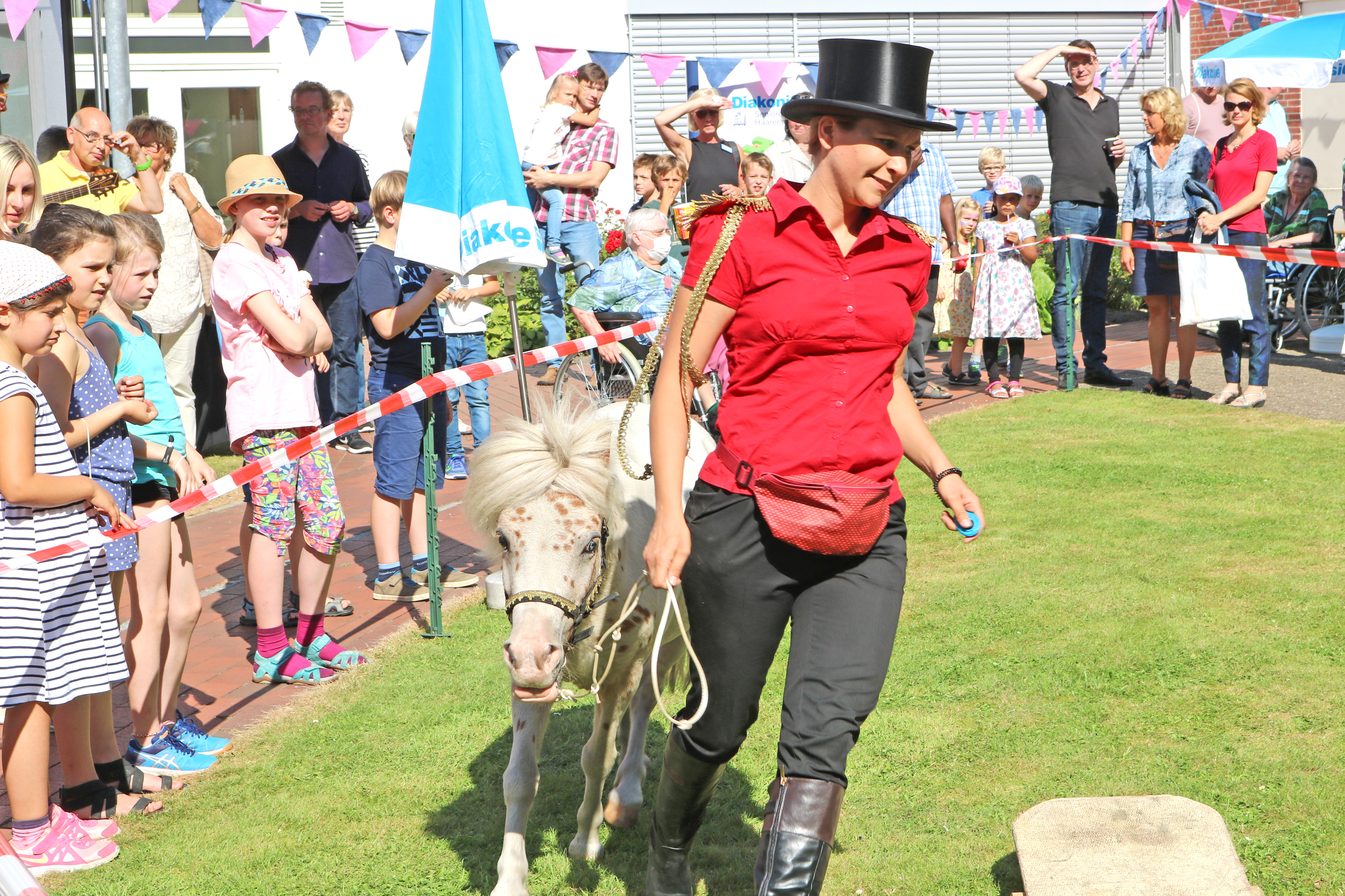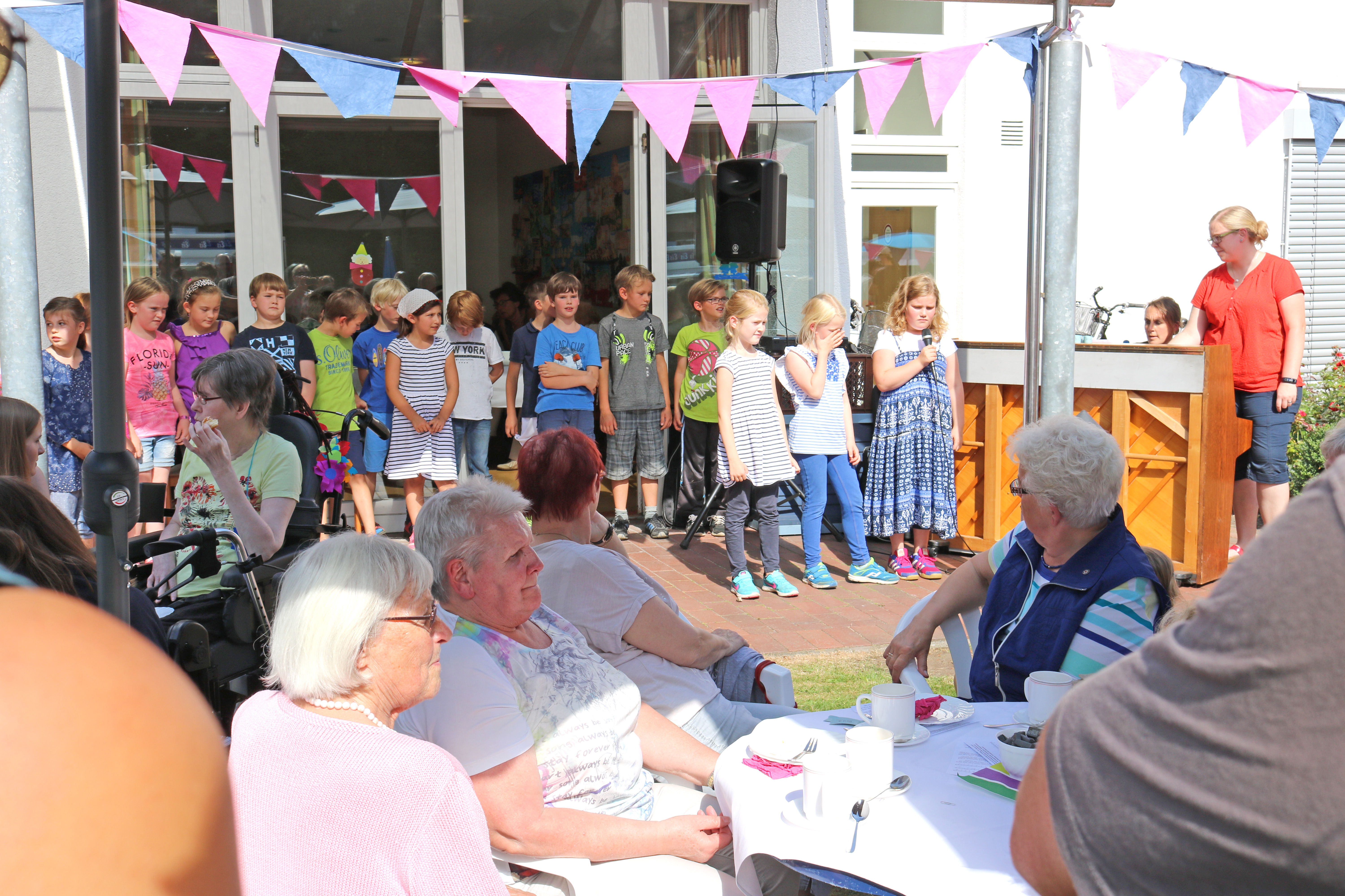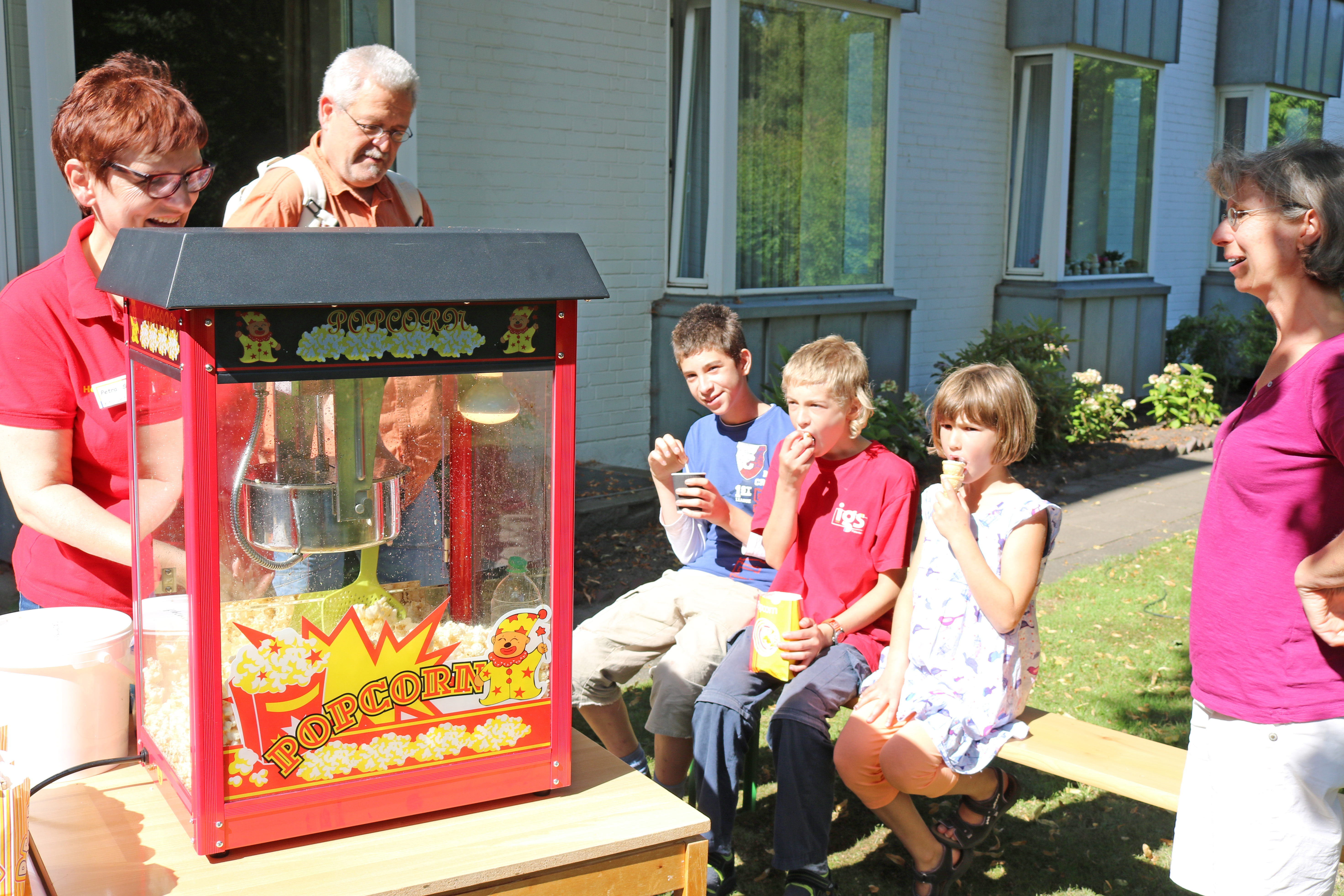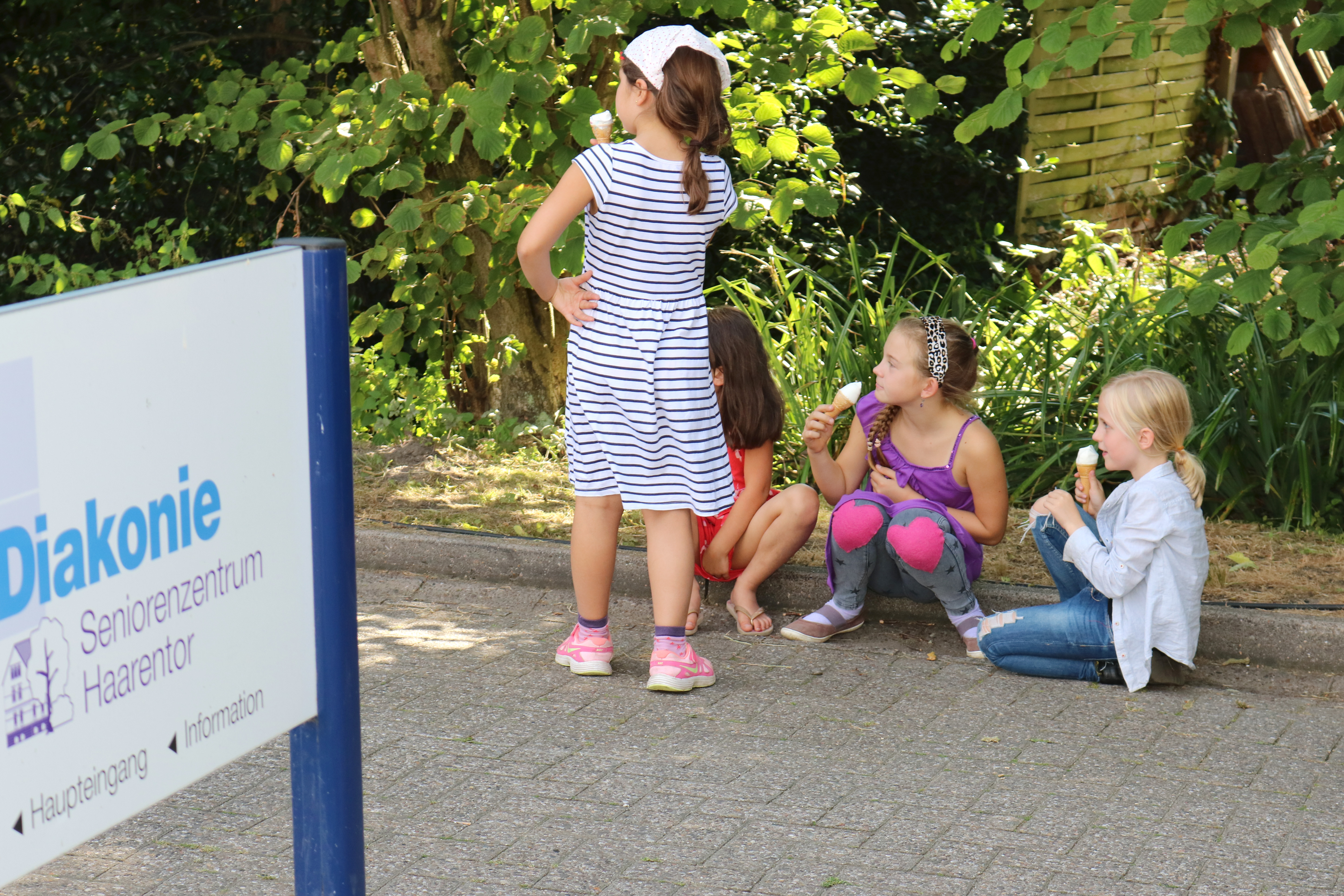 Oldenburg, 22.08.2016 - 1.150 Stücke Kuchen, hunderte Liter Kaffeespezialitäten und Kaltgetränke, Softeis und Popcorn in ungezählten Mengen. Das ist die kulinarische Bilanz des Sommerfest im Seniorenzentrum Haarentor. Nachbarn, Schüler, Kirchengemeinde, Kindergarten und Vereine waren ins Seniorenzentrum der Diakonie gekommen, um mit den Senioren und den Flüchtlingen aus dem Wohnheim zu feiern. Sonnenschein, drei Clowns, ein Zirkuspferdchen und zahlreiche Mitmachangebote sorgten für gute Laune. Vor, hinter und im Seniorenzentrum ist Aktion, freuen sich Einrichtungsleiterin Hilke Wulf und Hauswirtschaftsleiterin Karin Wessels. "Dank der guten Vorbereitung und der vielen Helfer läuft alles rund."