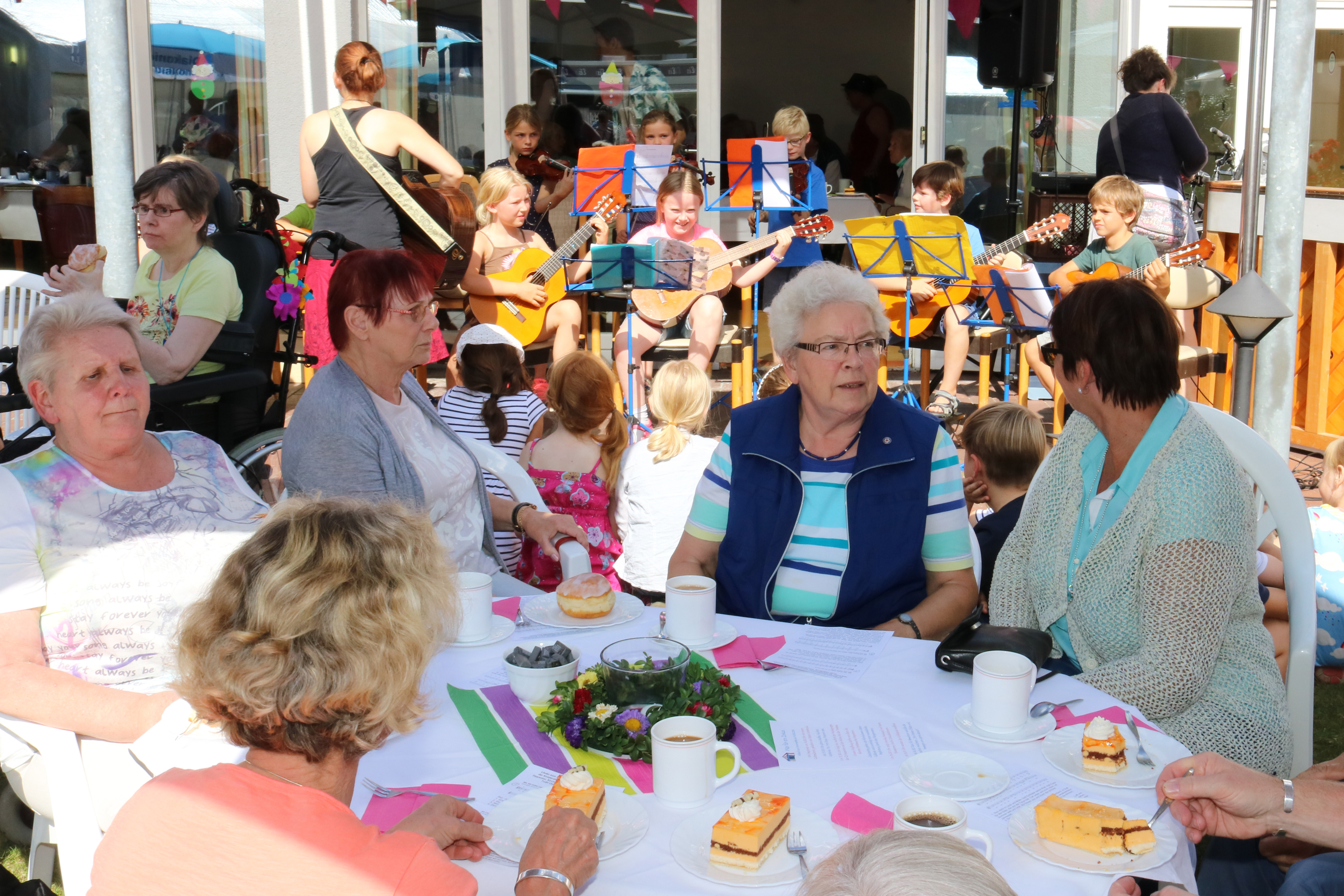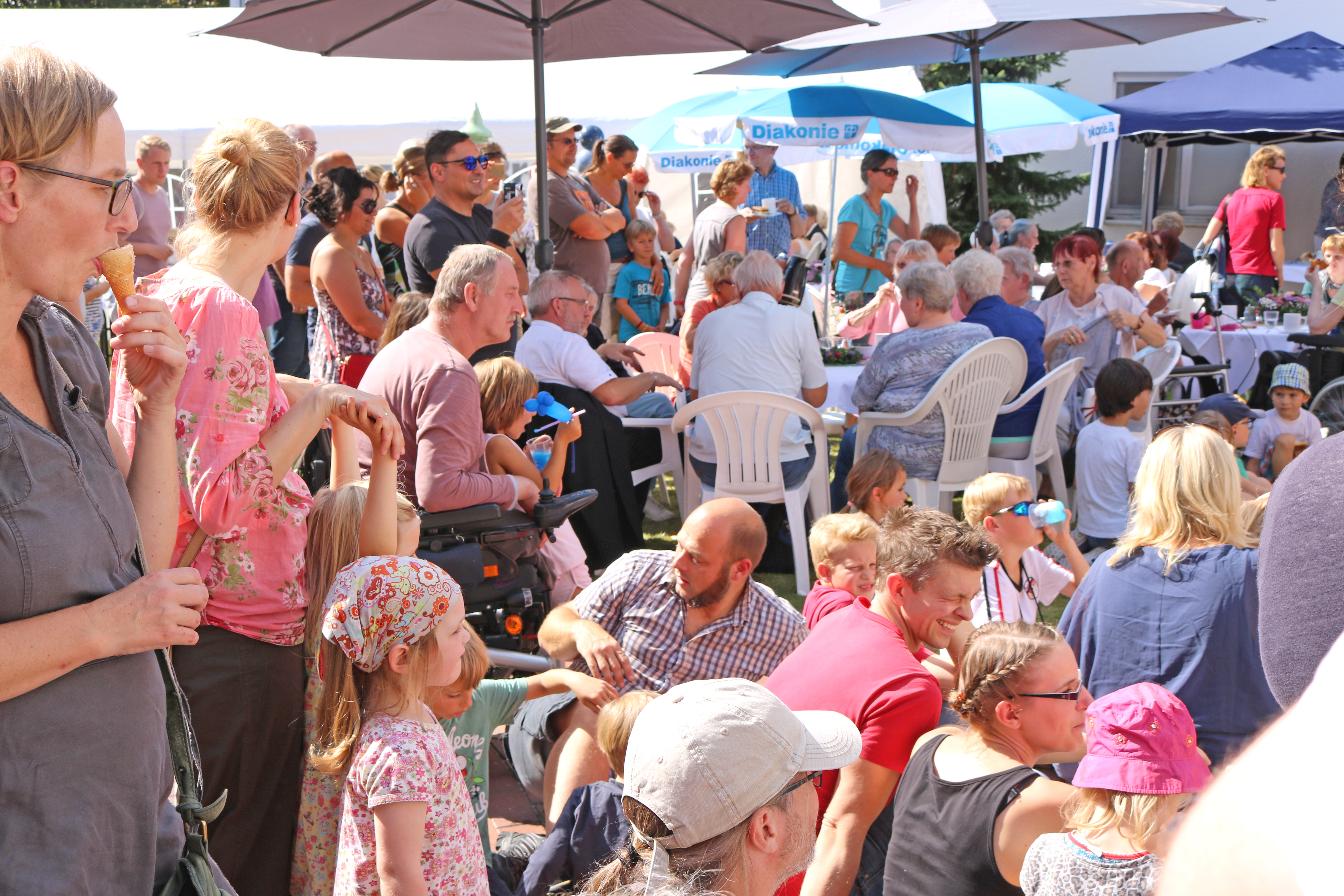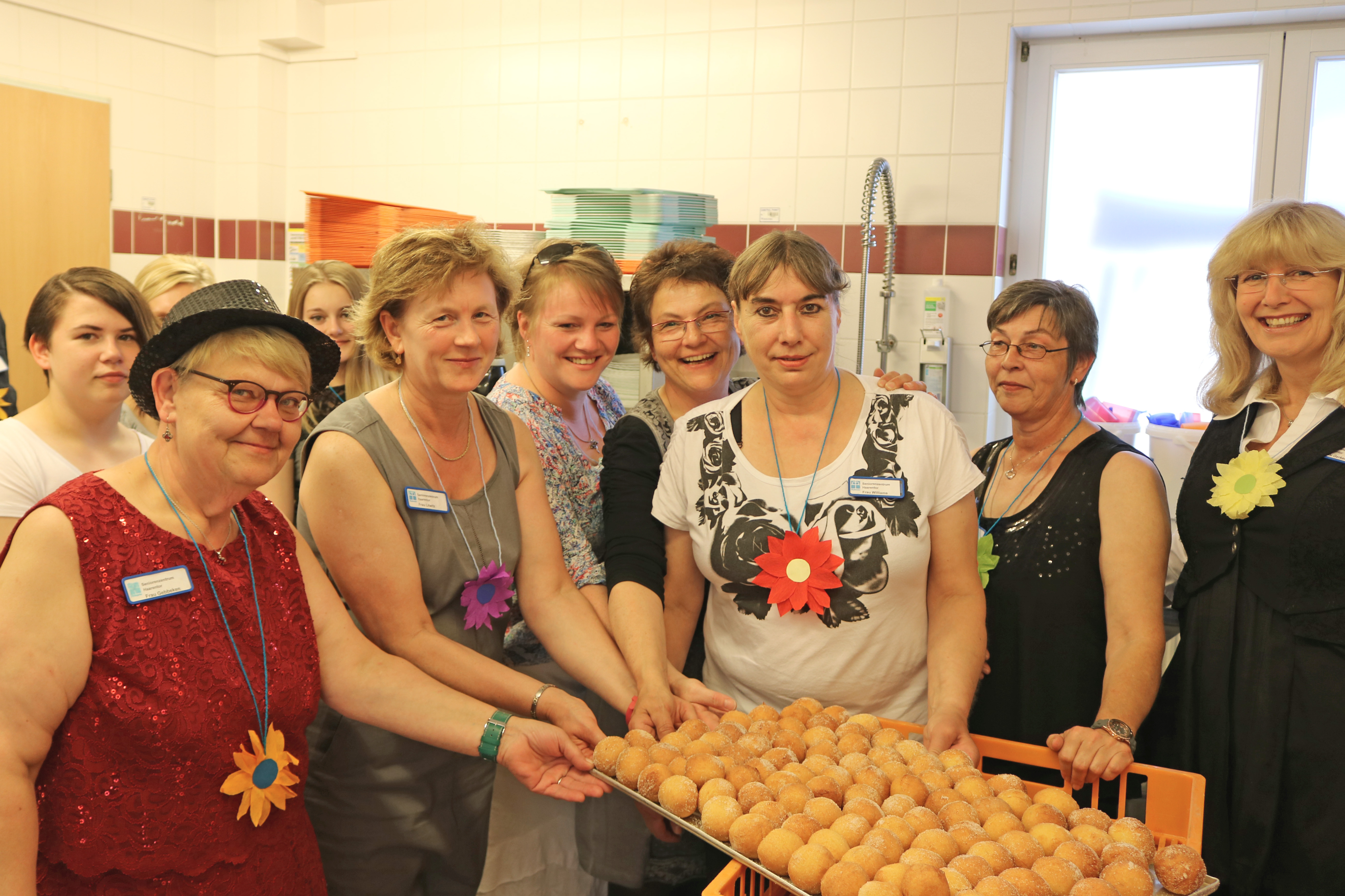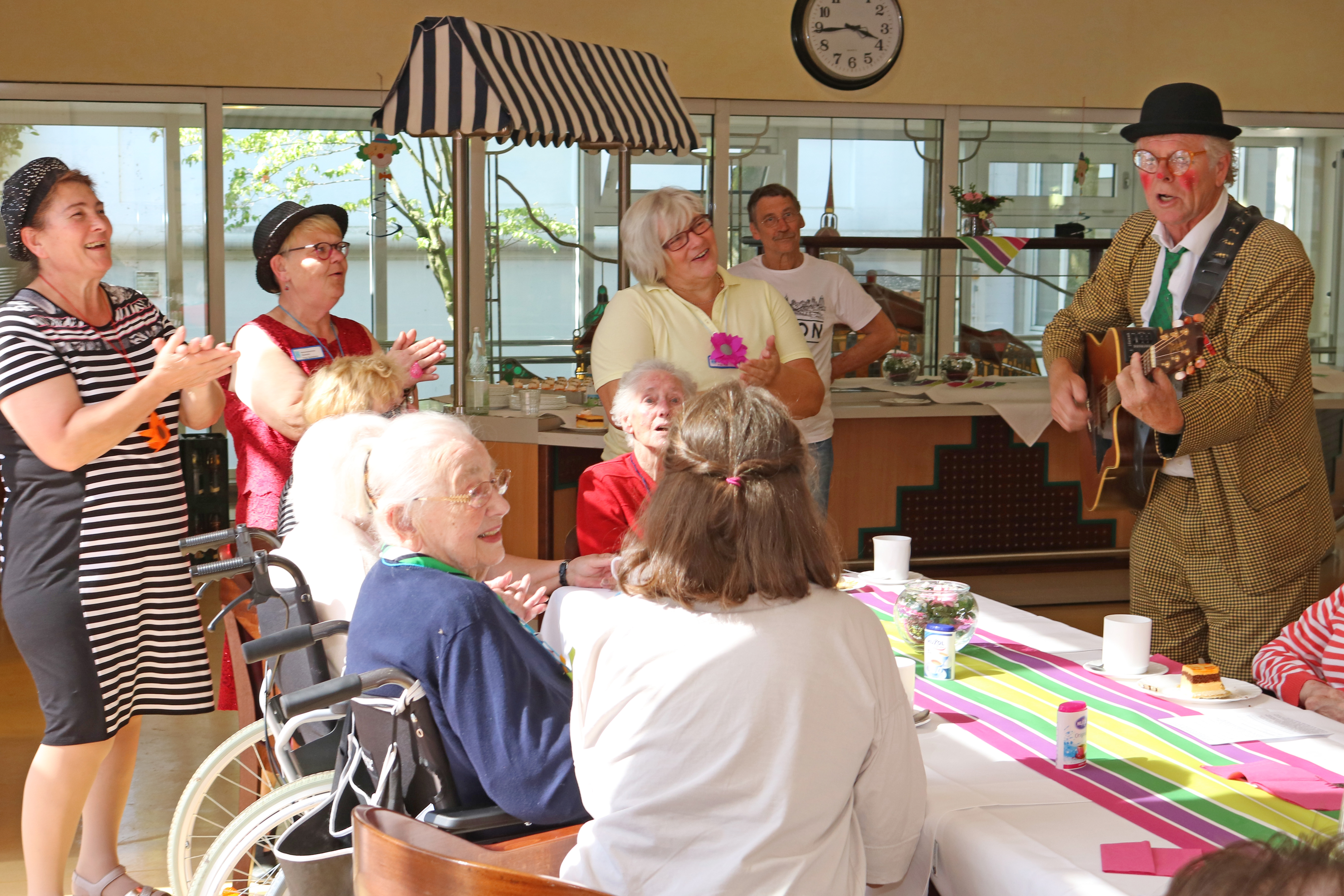 Oldenburg, 22.08.2016 - 1.150 Stücke Kuchen, hunderte Liter Kaffeespezialitäten und Kaltgetränke, Softeis und Popcorn in ungezählten Mengen. Das ist die kulinarische Bilanz des Sommerfest im Seniorenzentrum Haarentor. Nachbarn, Schüler, Kirchengemeinde, Kindergarten und Vereine waren ins Seniorenzentrum der Diakonie gekommen, um mit den Senioren und den Flüchtlingen aus dem Wohnheim zu feiern. Sonnenschein, drei Clowns, ein Zirkuspferdchen und zahlreiche Mitmachangebote sorgten für gute Laune. Vor, hinter und im Seniorenzentrum ist Aktion, freuen sich Einrichtungsleiterin Hilke Wulf und Hauswirtschaftsleiterin Karin Wessels. "Dank der guten Vorbereitung und der vielen Helfer läuft alles rund."