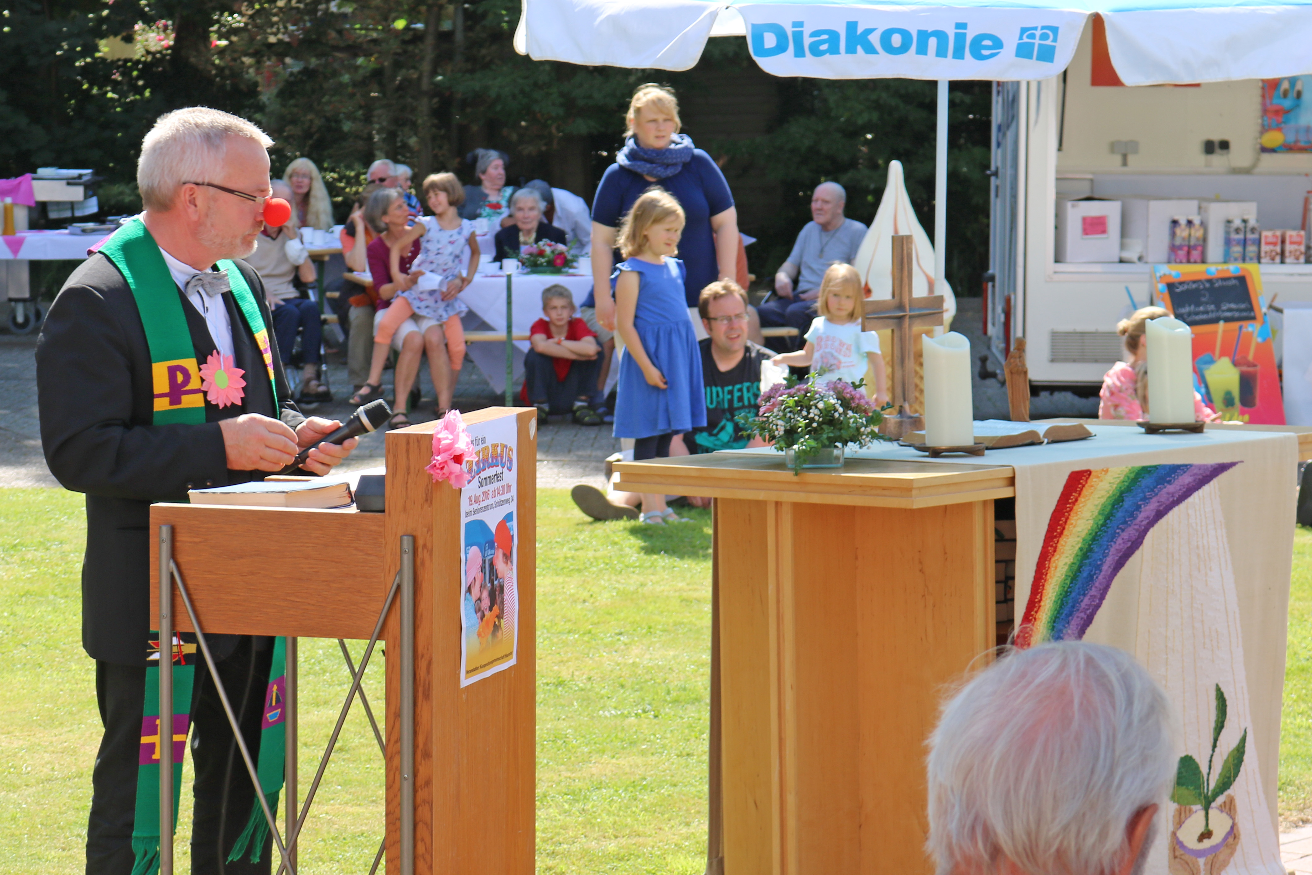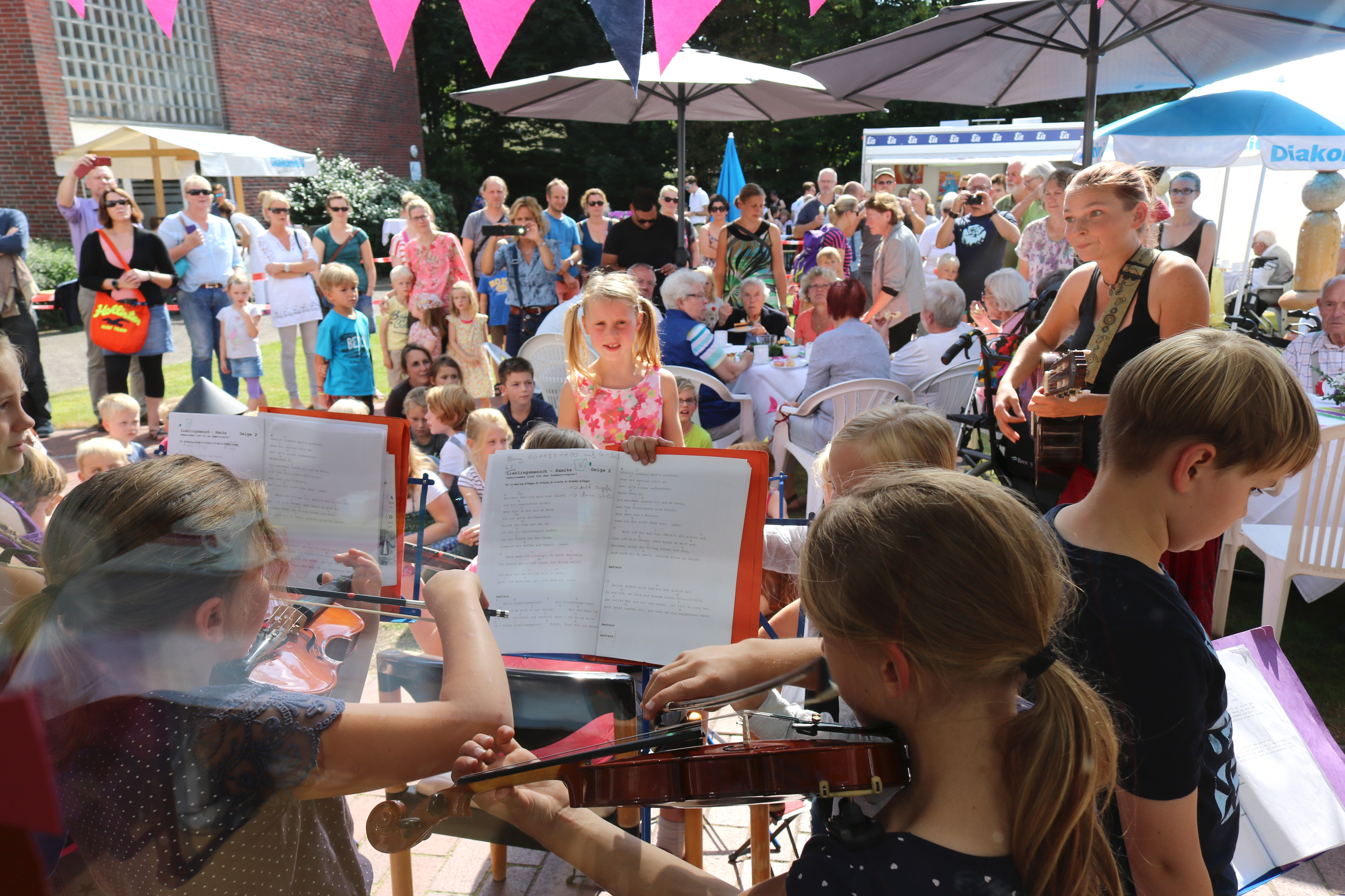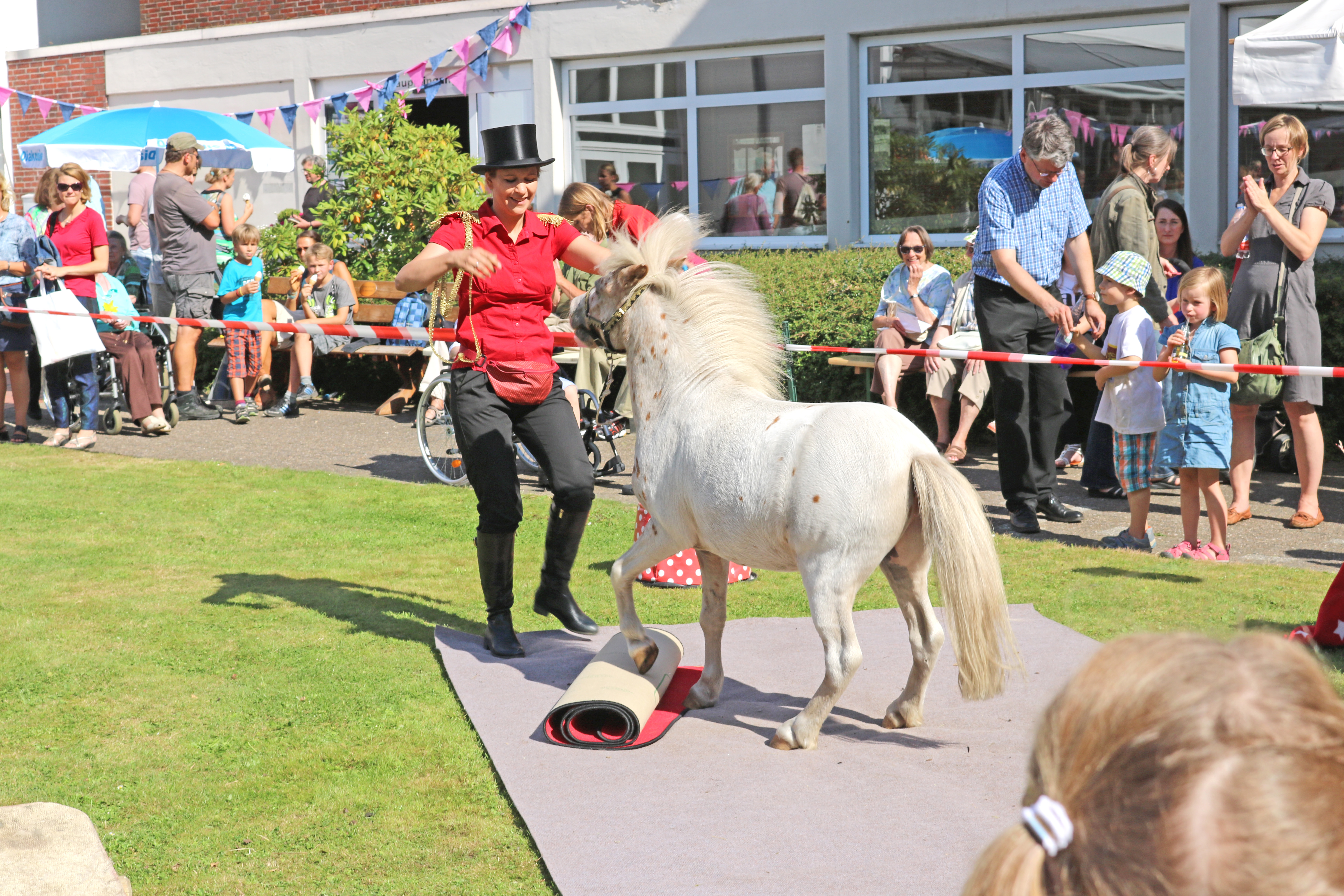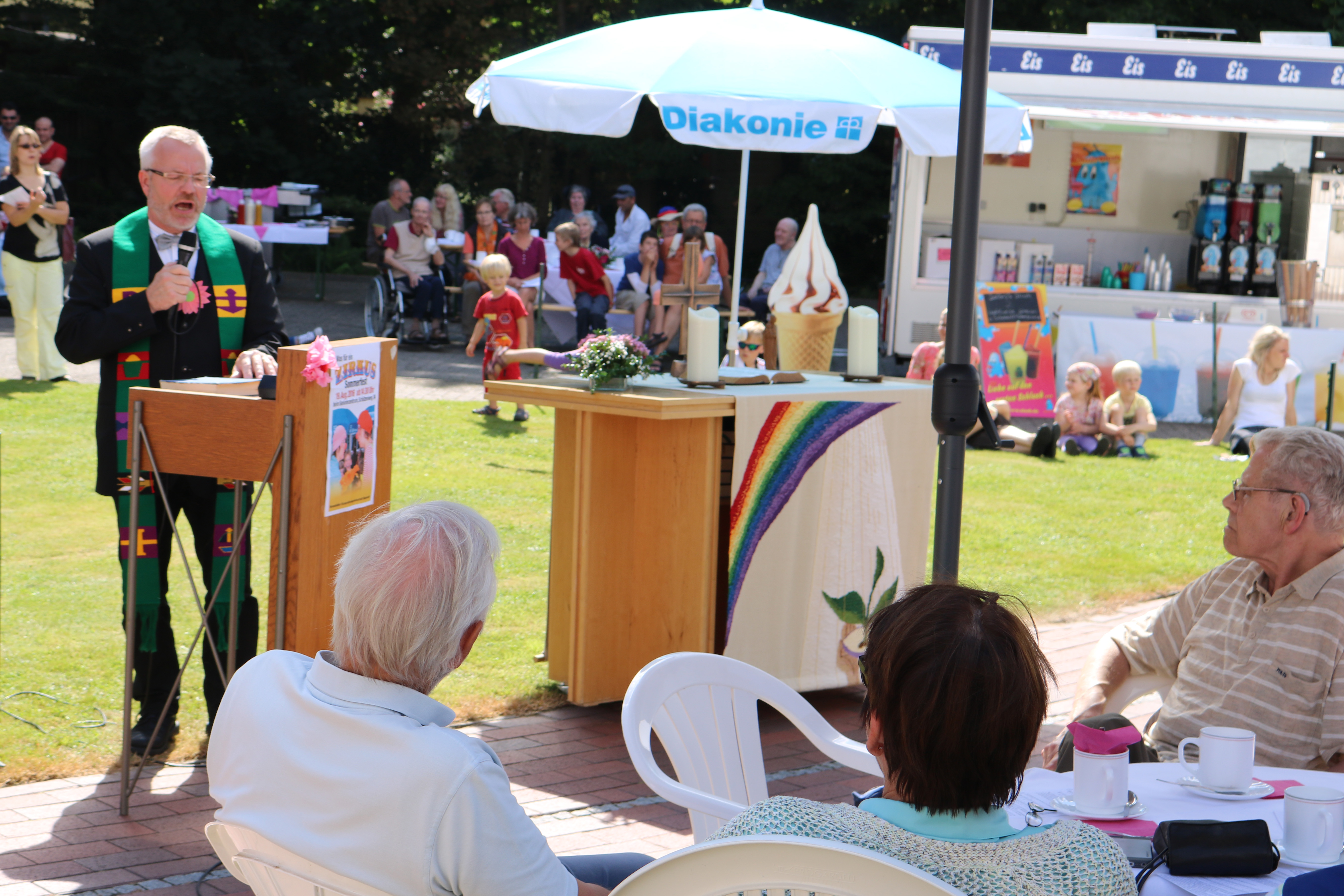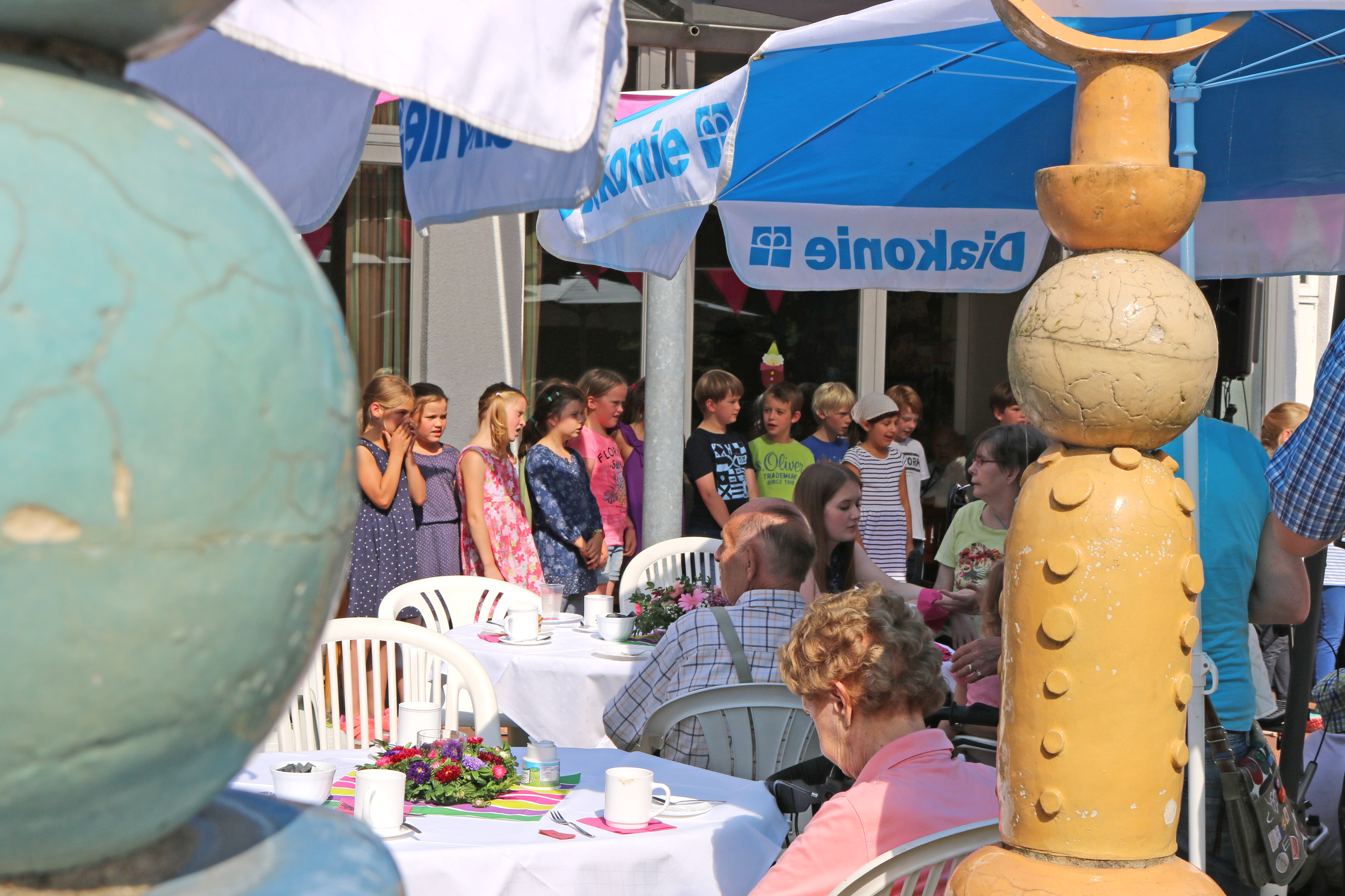 Oldenburg, 22.08.2016 - 1.150 Stücke Kuchen, hunderte Liter Kaffeespezialitäten und Kaltgetränke, Softeis und Popcorn in ungezählten Mengen. Das ist die kulinarische Bilanz des Sommerfest im Seniorenzentrum Haarentor. Nachbarn, Schüler, Kirchengemeinde, Kindergarten und Vereine waren ins Seniorenzentrum der Diakonie gekommen, um mit den Senioren und den Flüchtlingen aus dem Wohnheim zu feiern. Sonnenschein, drei Clowns, ein Zirkuspferdchen und zahlreiche Mitmachangebote sorgten für gute Laune. Vor, hinter und im Seniorenzentrum ist Aktion, freuen sich Einrichtungsleiterin Hilke Wulf und Hauswirtschaftsleiterin Karin Wessels. "Dank der guten Vorbereitung und der vielen Helfer läuft alles rund."