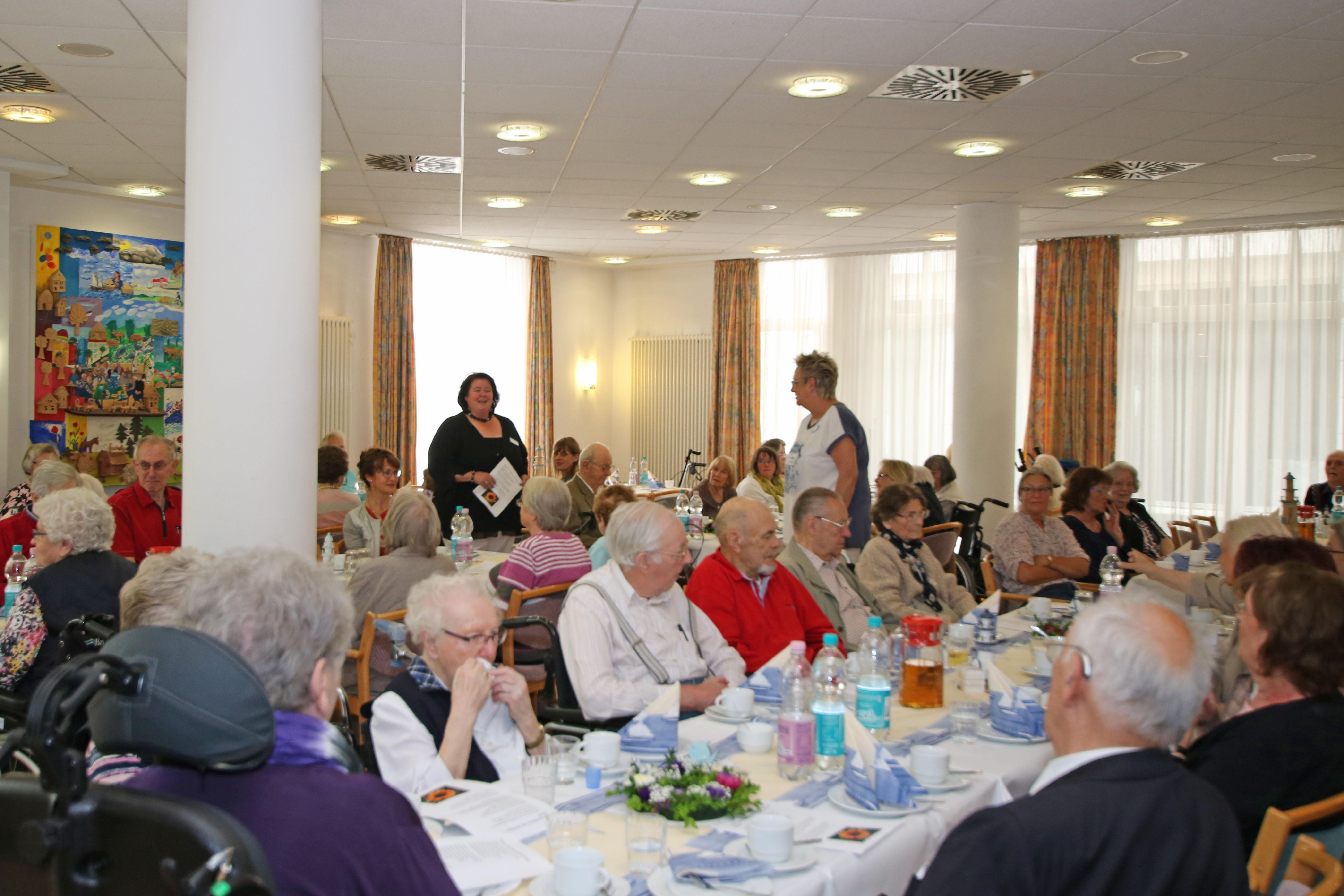 Oldenburg, 22. Aug. 2017 – Mit Angehörigen, Kindern, Enkeln, Nachbarn, Mitarbeitenden und Ehrenamtlichen feierten die Senioren im Büsingstift am 22. August ein großes Sommerfest. Zum Auftakt hielt Pastorin Christiane Cuno eine Andacht zum Thema Trost: „Die Sonne scheint auch an trüben Tagen.“ Der seit 1974 bestehende Shantychor Oldenburg sang mitten zwischen den Besuchern. Einrichtungsleiterin Hilke Wulf sorgte mit ihrem Team für Kaffee, Kuchen, Eis und Sommerbowle. Solche Bowlen waren in den 50er, 60er Jahren sehr beliebt. Sie schmecken gut und wecken Erinnerungen, weiß die Leiterin des diakonischen Hauses. Begleitend zum Fest wurden an Ständen Geschenkartikel, handgefertigte Seifen, Schmuck und Handarbeiten angeboten. Wegen seiner Lage im Zentrum der Stadt wird das Büsingstift von alten Oldenburgern besonders geschätzt.