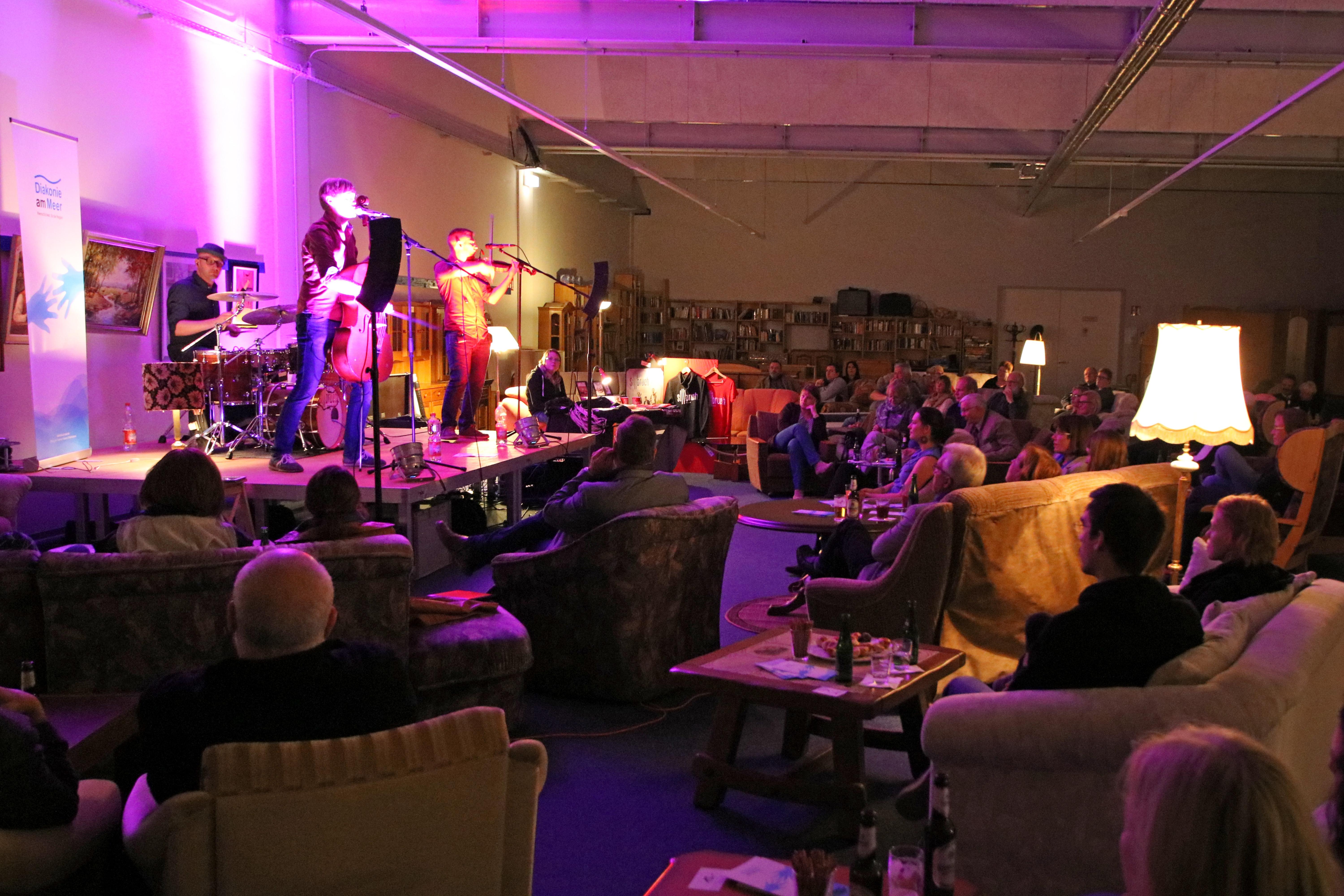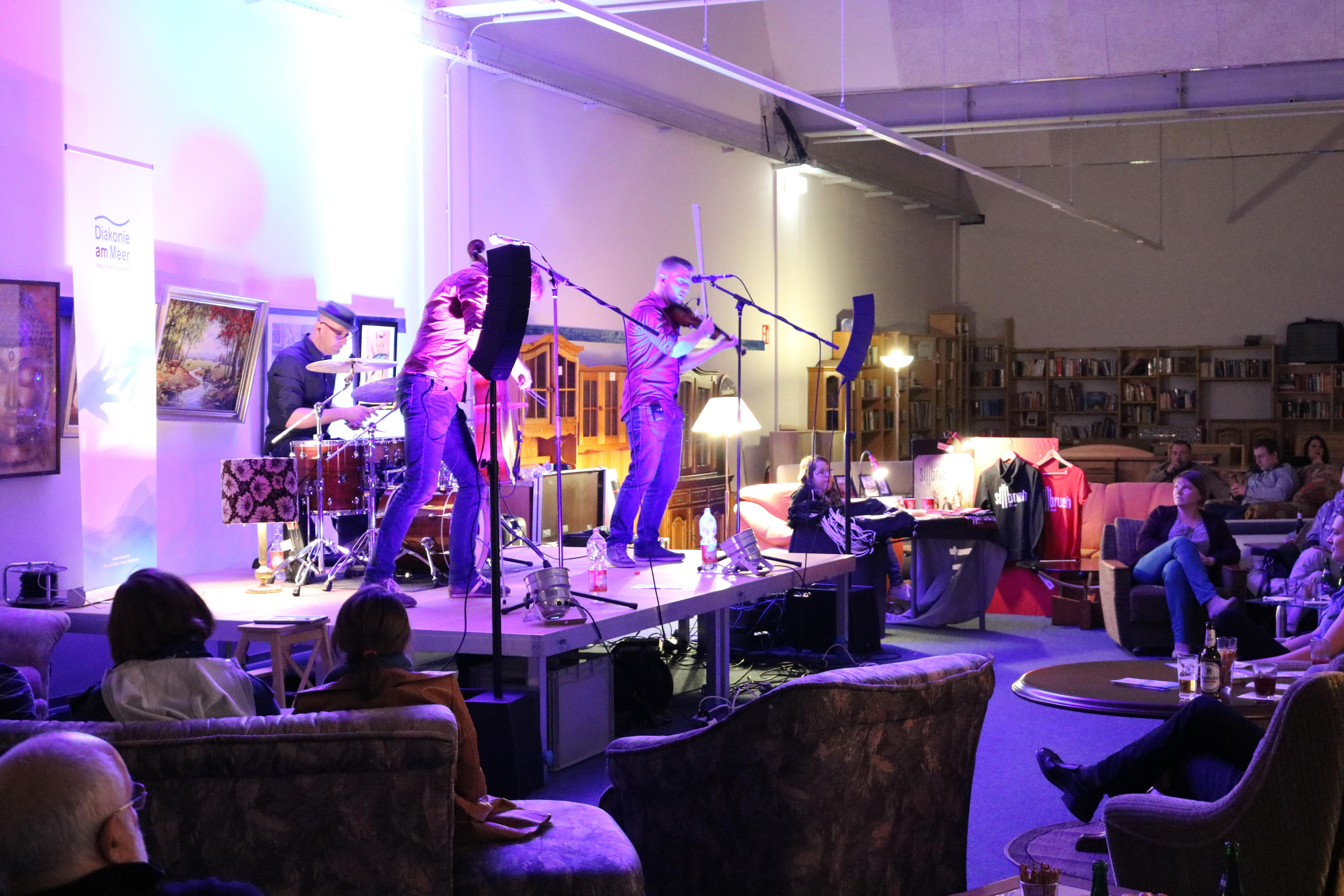 Stilbruch spielt im Sozialen Kaufhaus Wilhelmshaven rockige Popmusik für Diakonie-Stiftung Friesland-Wilhelmshaven