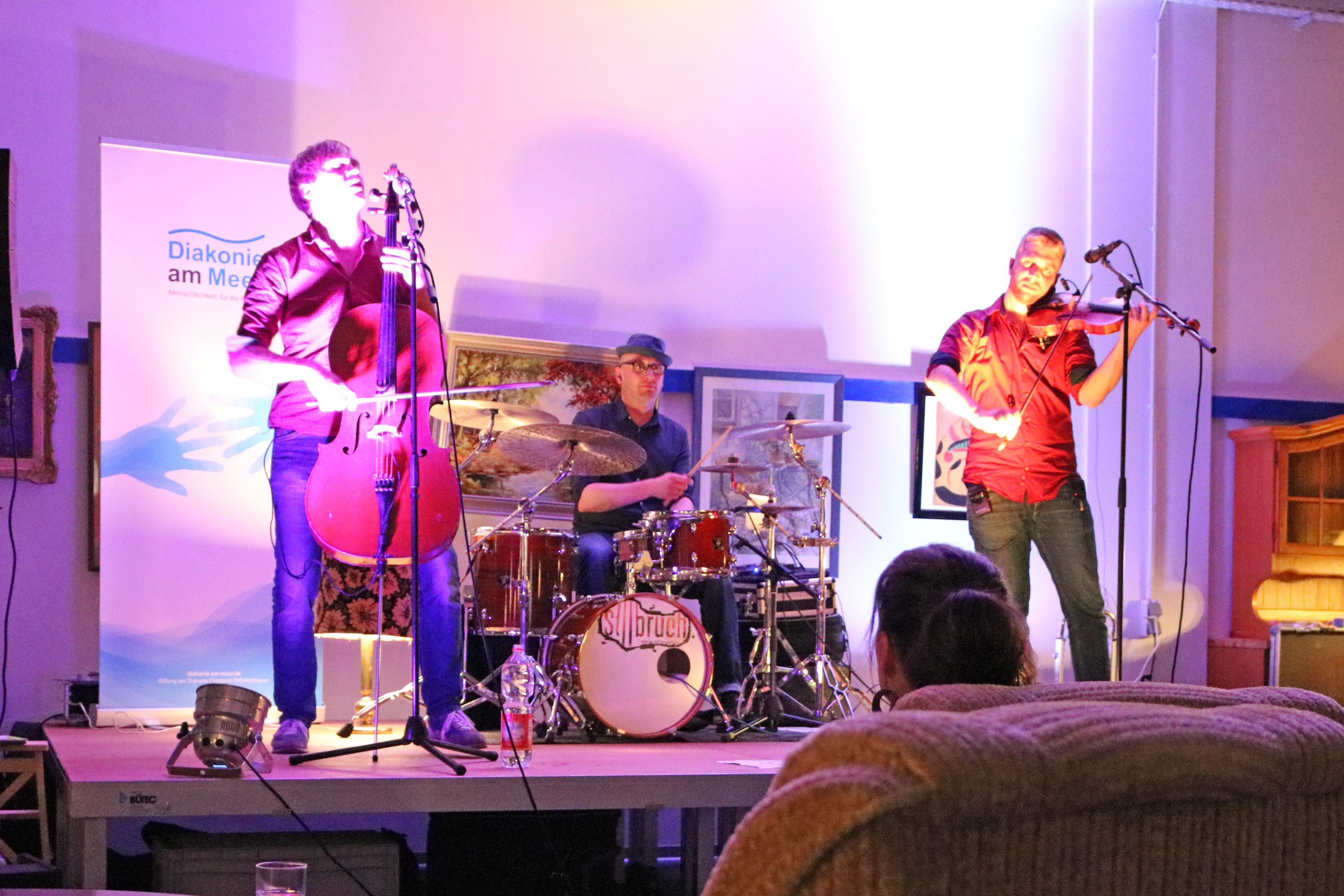 Wilhelmshaven, 29.09.2017 - Aus Anlass der Woche der Diakonie tourt die Gruppe Stilbruch durch zehn niedersächsische Städte. Mit dem Konzert im Sozialkaufhaus der Diakonie in Wilhelmshaven wurde die neue Diakonie-Stiftung am Meer vorgestellt. Unter dem Motto mehr Menschlichkeit für die Region fördert die neue Stiftung Projekte für in Not geratene Menschen in Friesland und Wilhelmshaven. Der Grundstock für die Stiftung wurde durch eine Erbschaft und eine Zustiftung gelegt. Das versetzte die Stiftung in die Lage ein Flüchtlingswohnheim zu erwerben und renovieren, berichten die Stiftungsvorstände Klaus Lücken und Hildegard Kriebietzsch. Sie hoffen auf weitere Unterstützung für die Stiftung von Firmen und Einzelpersonen. Im eigens für das Konzert umgeräumten Sozialen Kaufhaus der Diakonie spielte die Gruppe Stilbruch rockige Popmusik mit klassischen Instrument. Sessel und Sofas, Tische und Stühle verwandelten die Halle zum großen Wohnzimmer mit toller Akkustik, freuten sich die Musiker. Sebastian Maul, Eli Fabrikant und Gunnar Nilsson füllen mittlerweile europaweit Konzerthallen, kehren aber gerne auch zu den Wurzeln in der Straßenmusik zurück. den selbst komponierten Songs hat Stilbruch begeisterte Zuhörer gewonnen. Mit ihrem aktuellen Album "Nimm mich mit" ist die Band im Mai diesen Jahres beim evangelischen Kirchentag aufgetreten. Im Rahmen der Diakonie-Tour unterstützt die Band die diesjährige Kampagne der Diakonie unter der Überschrift "Glaube Hoffnung Nächstenliebe".
