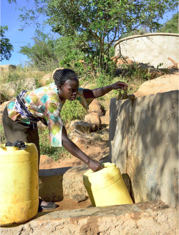 Im Rahmen der Aktion wird die Kleinbäuerin Agnes Irima aus Kenia vorgestellt. Viele Stunden am Tag war sie früher damit beschäftigt, Wasser zu holen. Um rechtzeitig zu der Wasserstelle am Fluss zu gelangen, stand sie morgens um drei Uhr auf. Der Weg zum Fluss war lang und gefährlich. Deswegen machte sich Agnes meist zusammen mit anderen Frauen aus dem Dorf lärmend auf den Weg. Der Krach schützte sie vor wilden Tieren. Außerhalb der Regenzeit sind viele Flüsse am Mount Kenya ausgetrocknet. Agnes und ihre Nachbarinnen gruben Löcher in das Flussbett, um zu schöpfen, was darin zusammenlief. Aber das Wasser in diesen Löchern ist schmutzig und voller Krankheitserreger, weil auch Tiere daraus trinken. „Wir hatten Probleme mit Würmern, erkrankten an der Amöbenruhr, besonders die Kinder litten häufig an Durchfall“, erinnert sich Agnes. Heute trinkt die Familie mindestens doppelt so viel. Nicht dass sie Wasser im Überfluss hätten. Für jeden Kanister bezahlen sie umgerechnet fünfzig Cent. Damit werden Instandhaltung und Ausbau der Wasserversorgung finanziert. Auf Initiative von Brot für die Welt hat eine lokale Baufirma auf dem Felsen oberhalb des Dorfes einen Tank gebaut. Nur wenige Tage Regen genügen, um ihn zu füllen. Mit der Hilfe des Entwicklungsdienstes der Anglikanischen Kirche Kenias haben schon mehr als 2000 Familien solche Regenwasser-Speicher bekommen. Für die armen Familien ist jetzt immer genügend sauberes Wasser da. „Wir fühlen uns gesund und kräftig, und die Kinder kommen gut in der Schule mit,“ berichtet Agnes. Seitdem sie sich nicht mehr den halben Tag um Wasser kümmern muss, hat sie mehr Zeit für die Landwirtschaft. Mit Spenden und Kollekten für Brot für die Welt können viele weitere Familien frisches Wasser bekommen.