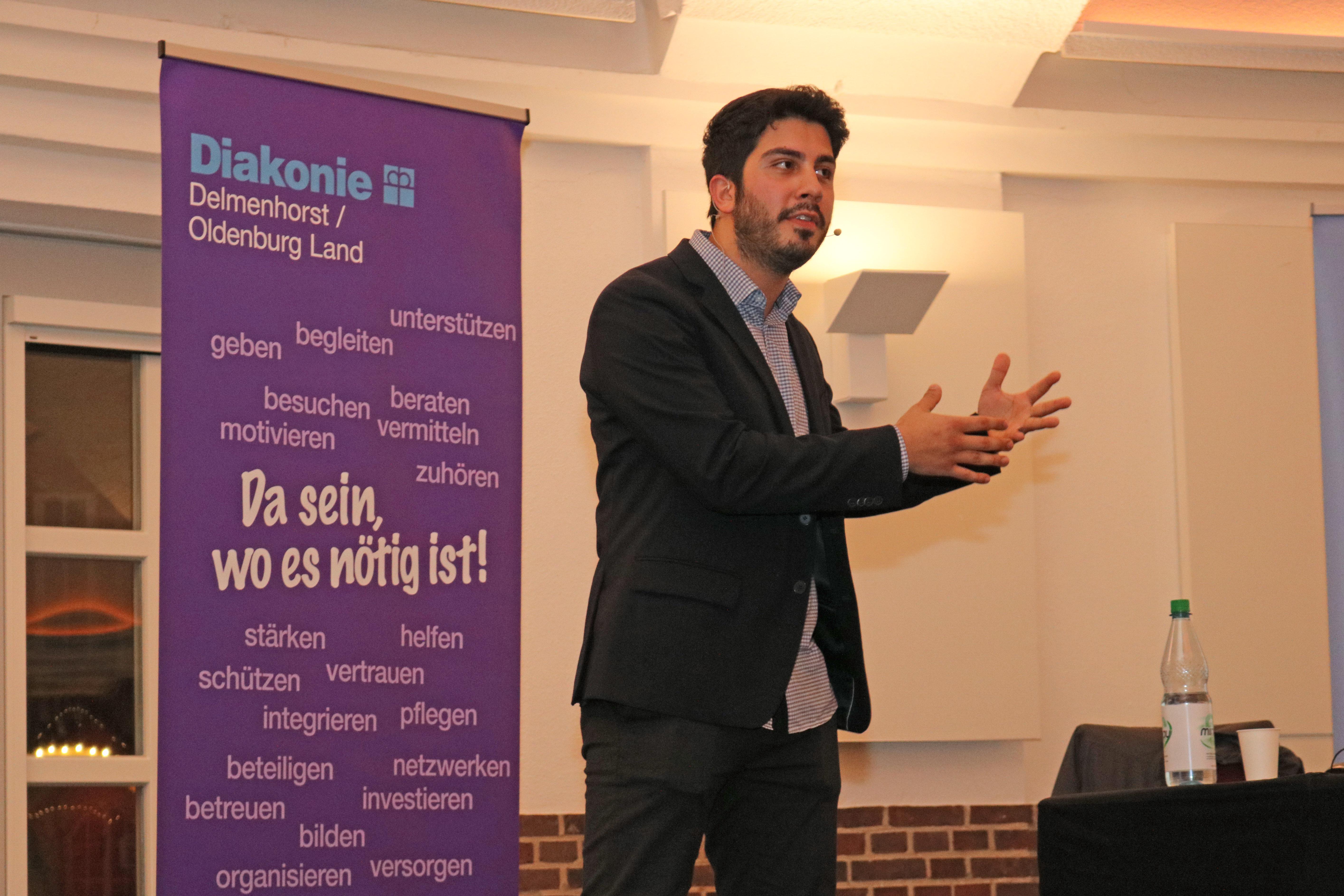 Delmenhorst, 14.11.2018 - Wer die Diskussion um Rassismus und Fremdenfeindlichkeit in Deutschland verfolgt, kommt an Ali Can nicht vorbei. Er engagiert sich für Unicef, hat einen interkulturellen Friedensverein gegründet und beteiligt sich an der "Universal Peace Federation“, einem internationalen Friedensnetzwerk. Bei der Demokratiekonferenz in Delmenhorst berichtet Ali Can, der sich auch "der Migrant ihres Vertrauens" nennt, in seinem interaktiven Vortrag von seiner "Hotline für besorgte Bürger" und liest Passagen aus seinem gleichnamigen Buch.