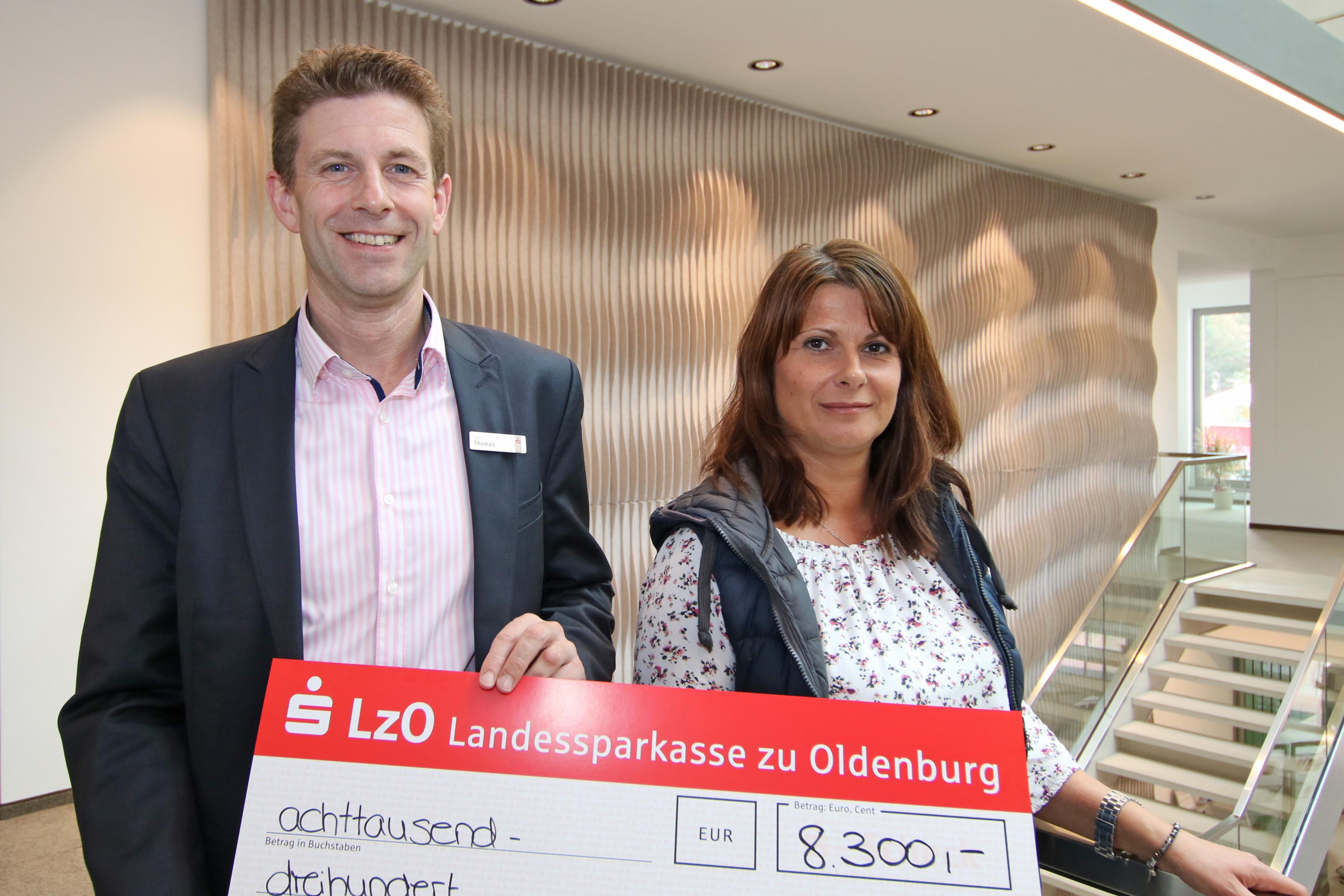 Jever 21.09.2018 - Die kostenlose Beratung für Überschuldete ist auf zusätzliche Förderung angewiesen, erklärte Schuldnerberaterin Georgia Gries. Deshalb freue Sie sich besonders, dass die Landessparkasse zu Oldenburg die Schuldnerberatung wieder unterstützt. LzO Regionaldirektor Ulf Thomas übergibt den symbolischen Scheck in Höhe von 8.300 Euro aus Erlösen der LzO-Lotterie "Sparen und Gewinnen". Kunden fördern die soziale Schuldnerberatung der Diakonie durch die Teilnahme und sorgen so dafür, dass Menschen in Überschuldung gute Beratung bekommen. Überschuldung resultiere meist aus unplanbaren Änderungen der Lebensumstände, die außerhalb der unmittelbaren Kontrolle der Überschuldeten liegen, erklärte Gries.
