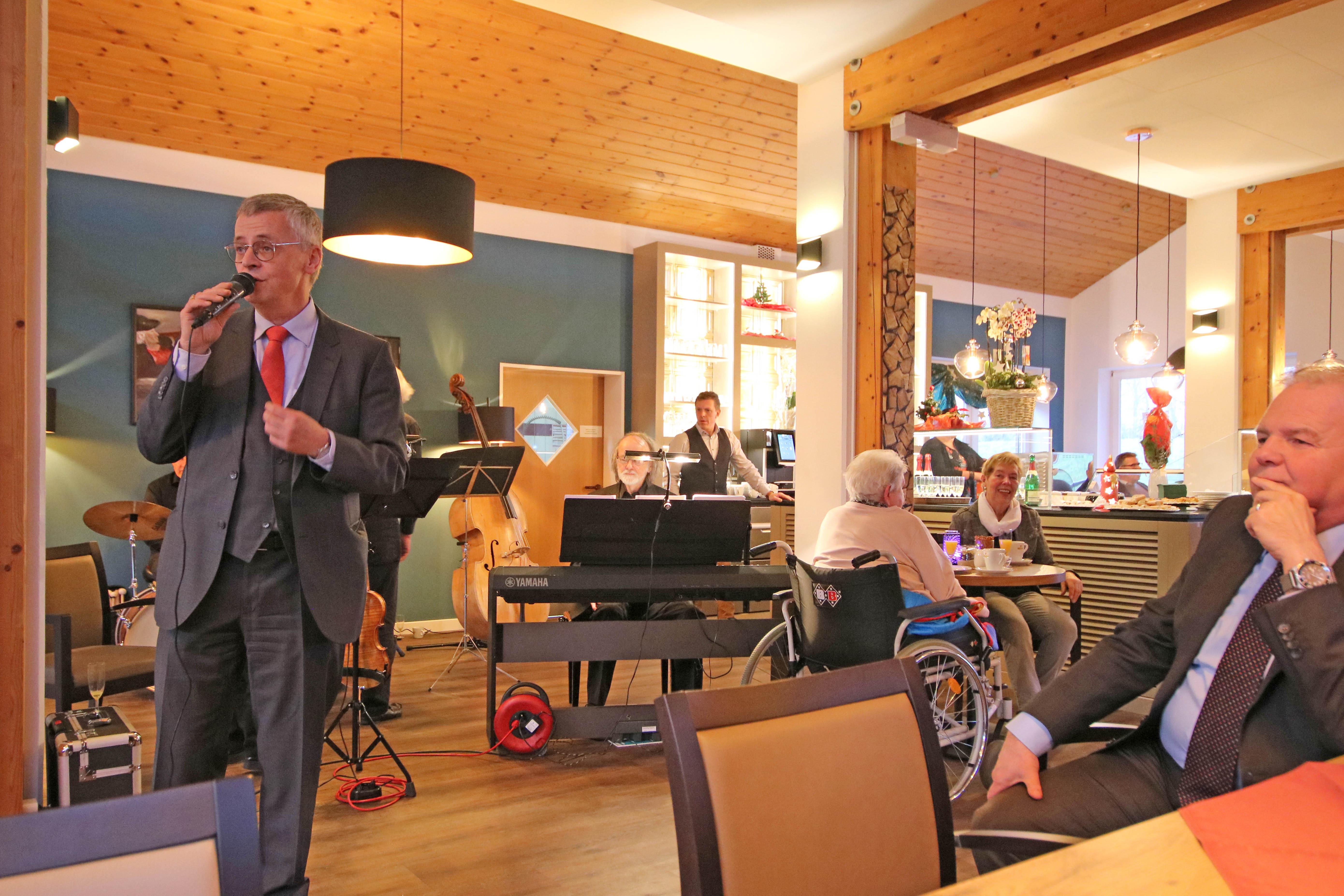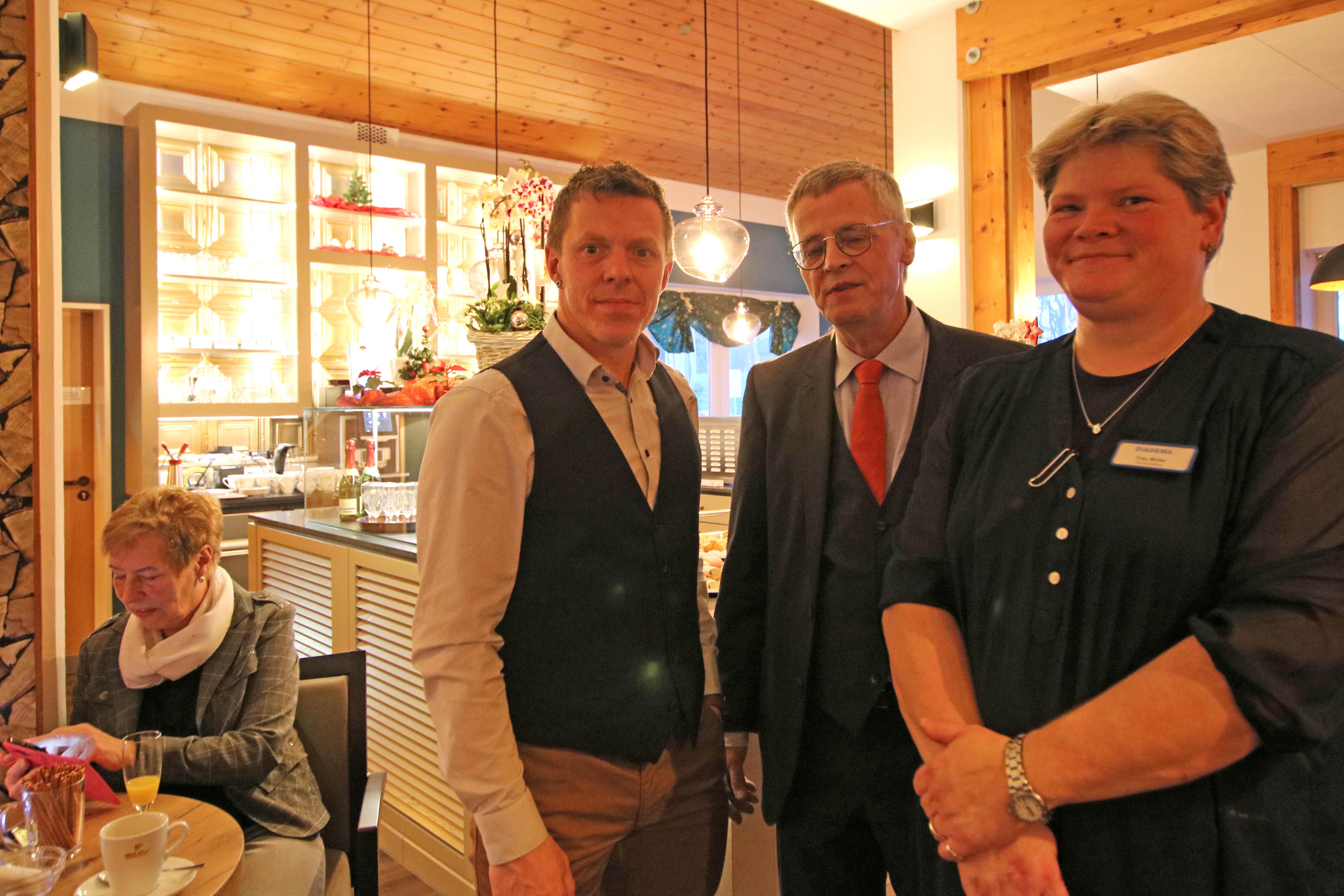 Nordenham-Blexen, 19.Dez. 2018 - Mit einem Grußwort von Landrat Thomas Brückmann ist das zweite Café Mitmensch in Nordenham-Blexen eröffent worden. Mit neuem Konzept lädt die Catering-Firma der Diakonie Besucher und Bewohner des Ev. Seniorenzentrum zum Kaffee trinken ein. Das Angebot reicht von süßen Kuchen und Getränken bis zu herzhaften Speisen. Täglich wird ein wechselnder Mittagstisch angeboten, erläutert Diadema Bereichsleiter Ronny Gruhl.