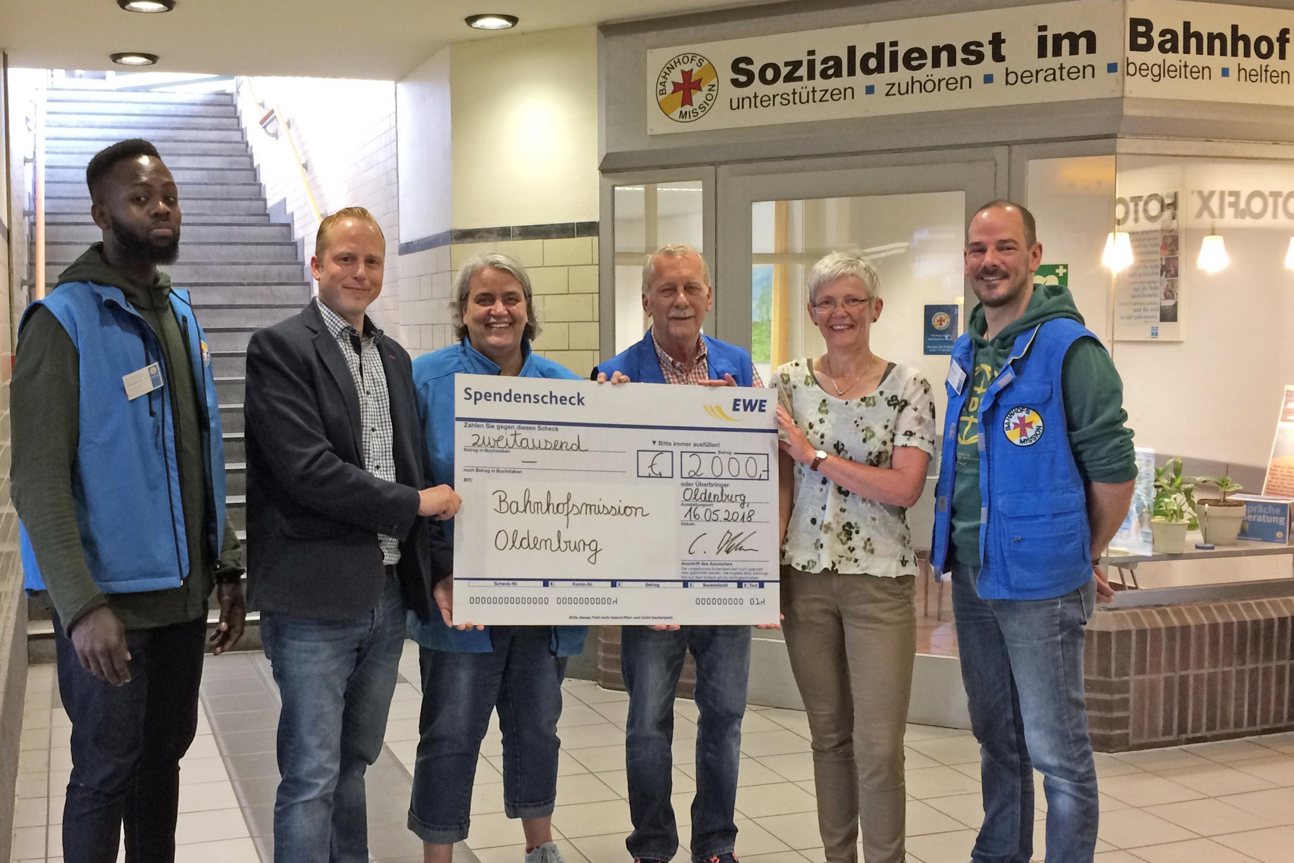 Dieses Mal geht das Geld an die Bahnhofsmission in Trägerschaft des Diakonischen Werkes Oldenburg. Der Sozialdienst bietet Menschen am Bahnhof, Unterstützung, Beratung, Begleitung und Vermittlung – unabhängig von Geschlecht, Alter, Konfession, Nationalität und sozialem Status. Zu den Leistungen der Bahnhofsmission gehört es auch, zuverlässig bedarfsgerechte Hilfe beim Ein-, Aus- und Umsteigen nach vorheriger Anmeldung im Reiseverkehr anzubieten – zum Beispiel für allein reisende Kinder, Menschen mit Gehbehinderung oder Familien mit Kinderwagen. Außerdem sind die Mitarbeitenden der Oldenburger Bahnhofsmission präsent, um spontan Hilfe beim Ein-, Aus- und Umsteigen zu leisten. Gelegentlich erhalten Menschen Hilfe in Form von einfachen Sachleistungen. Immer haben Mitarbeitende Zeit für ein persönliches Gespräch, das bei Bedarf auch kurzfristig, anonymen und vertrauliche geführt werden kann.