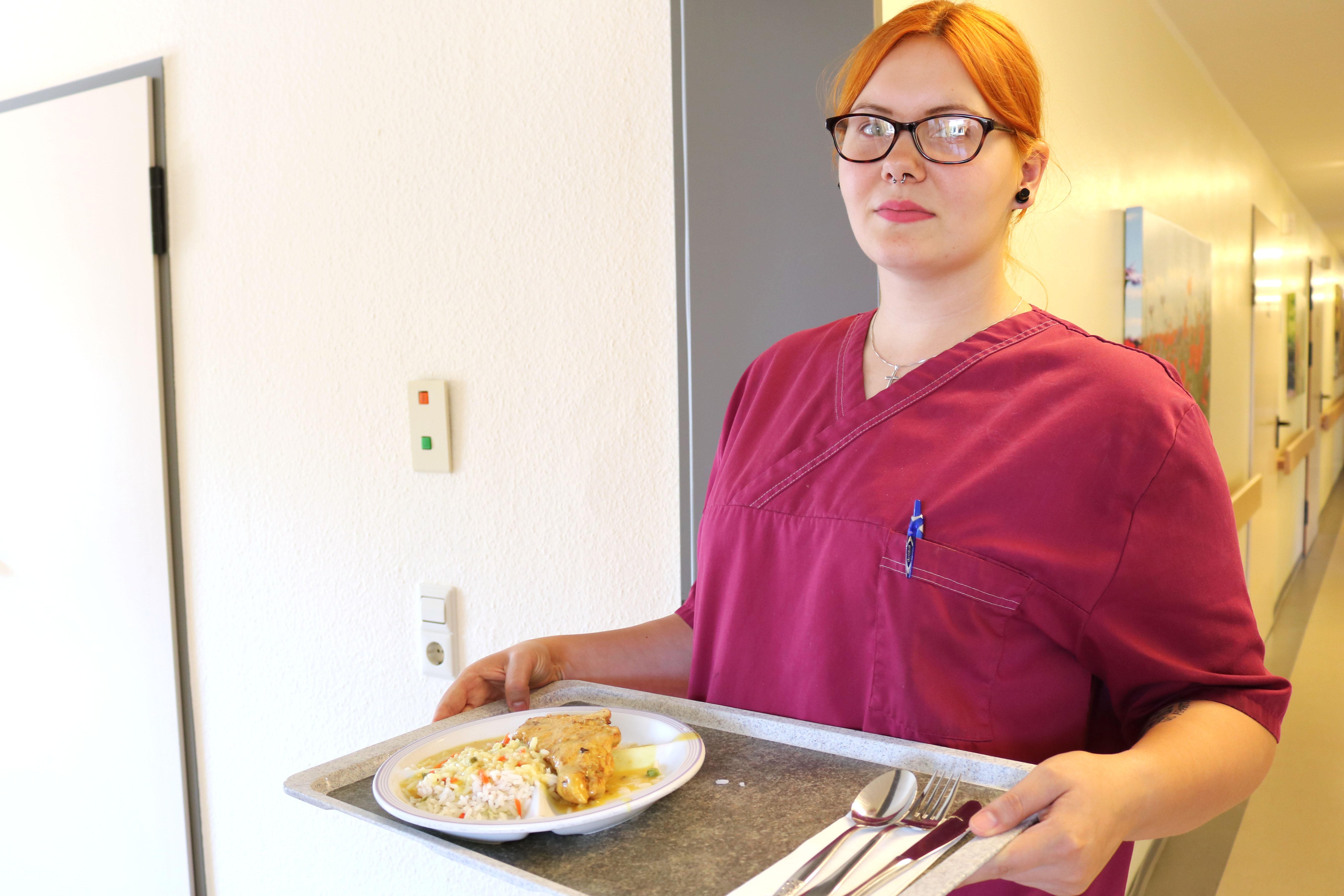 Vor der Übergabe an die nächste Schicht räumen Wilk und ihre Kollegin wieder alles auf und bringen die Bewohner zum Ausruhen in ihre Zimmer. „Du bist immer nett zu mir“, bekommt Wilk dabei wieder mit einem Lächeln gesagt. Wilk lächelt zurück. Es sind diese Momente, die ihr zeigen, dass die Ausbildung für sie genau das Richtige ist.