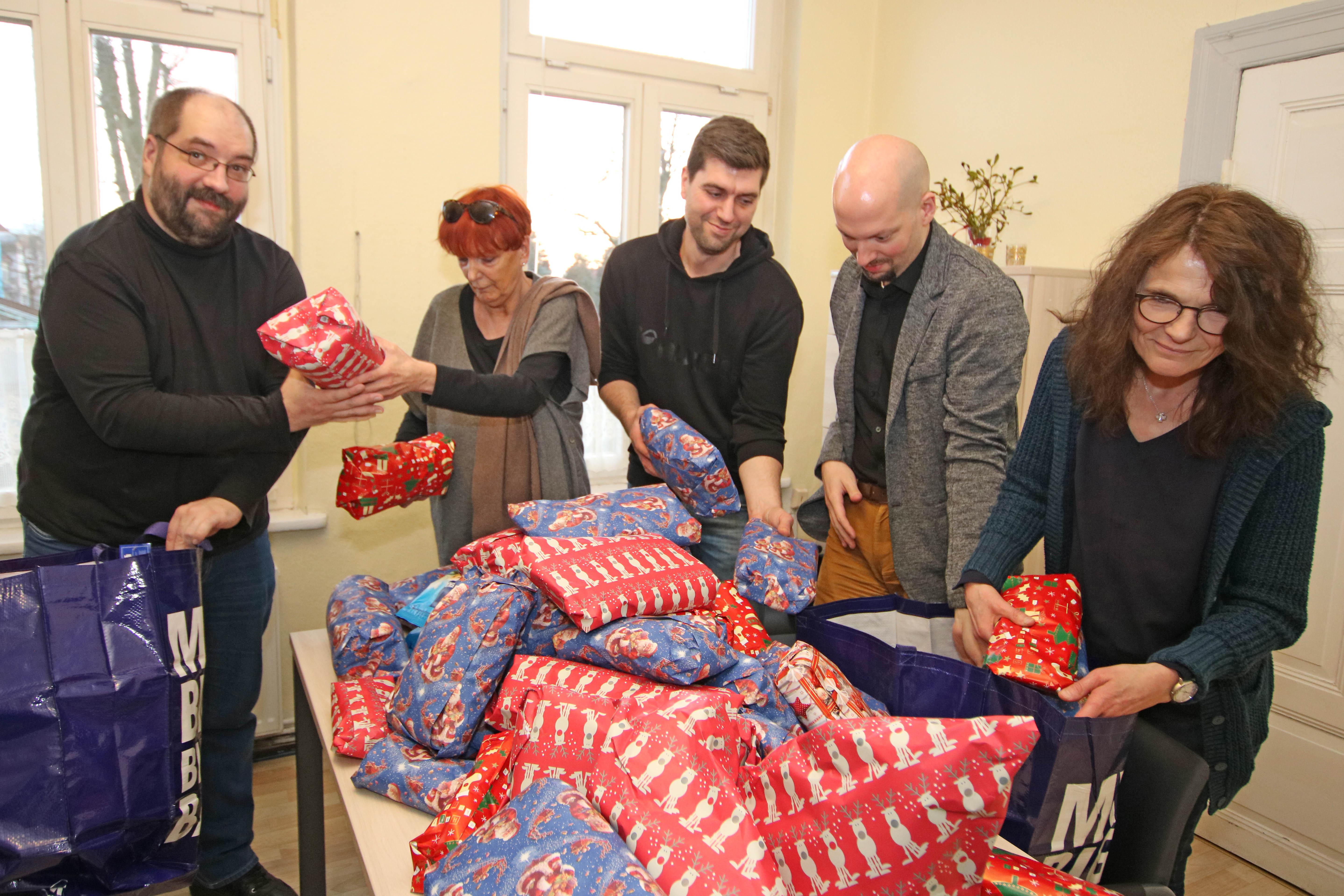 Oldenburg, 19. 12. 2018 – Drei prall gefüllte Säcke mit Geschenken für Wohnungslose hat Marikka Trepte-Mittelstaedt jetzt im Tagesaufenthalt der Diakonie übergeben. „Blaue Päckchen sind für Männer, rote für Frauen,“ erklärt die ehemalige Altenpflegerin. Seit vielen Jahren bereitet sie diese Geschenkaktion zusammen mit Ihren Söhnen Benjamin und Christoph Mittelstaedt vor. Die Päckchen werden dann gemeinsam gepackt. Aus Erfahrung und vom Tagesaufenthalt wissen die Mittelstaedts, was Wohnungslose sich besonders wünschen. Die Päckchen enthalten Praktisches wie Wolldecken, Handtücher und Duschgel. Aber auch Wollsocken, Schals und Handschuhe sind gern gesehen. Alle Geschenke sind neu, erklärt Marikka Trepte-Mittelstaedt, denn Wohnungslose freuen sich genauso über solche Geschenke wie Andere.