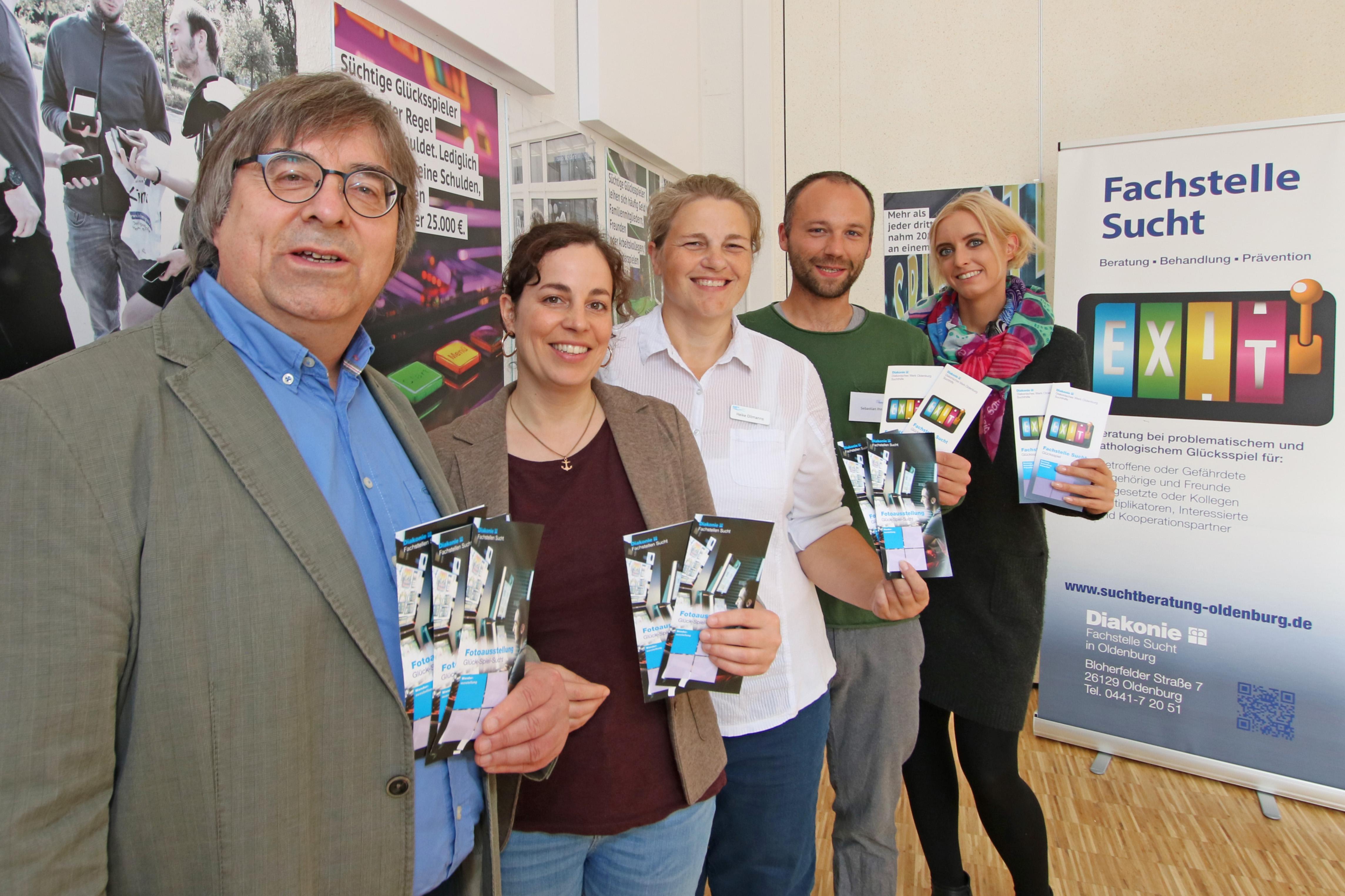 Oldenburg, 25. Sept. 2019 - In nur drei Monaten haben Mitarbeitende der Fachstellen Sucht der Diakonie und die Jugendschutzbeauftragte der Stadt Wilhelmshaven eine Ausstellung zum Thema Glücksspielsucht an die Wand gebracht. Das wurde deutlich bei der Eröffnung der Ausstellung in der Fachstelle Sucht in Oldenburg. Damit die Betrachter mit den Informationen und Bildern nicht alleine bleiben, haben sich die Suchtberater der Diakonie entschlossen, hier wie auch an weiteren Ausstellungsorten als Ansprechpartner zur Verfügung zu stehen. Damit wird aus der Ausstellung zum Aktionstag Glücksspielsucht ein wichtiger Baustein der Präventionsarbeit. Zeigen wollen die Suchtberater die Ausstellung künftig in Schulen, in Justizvollzugsanstalten und anderen Orten, wo Spieler anzutreffen sind. Immer wird es darum gehen, auch als Ansprechpartner zur Verfügung zu stehen, erklärt Bernd Alpers, der in Wilhelmshaven in der Suchttherapie tätig ist. "Wir wollen die Menschen nicht alleine lassen!"