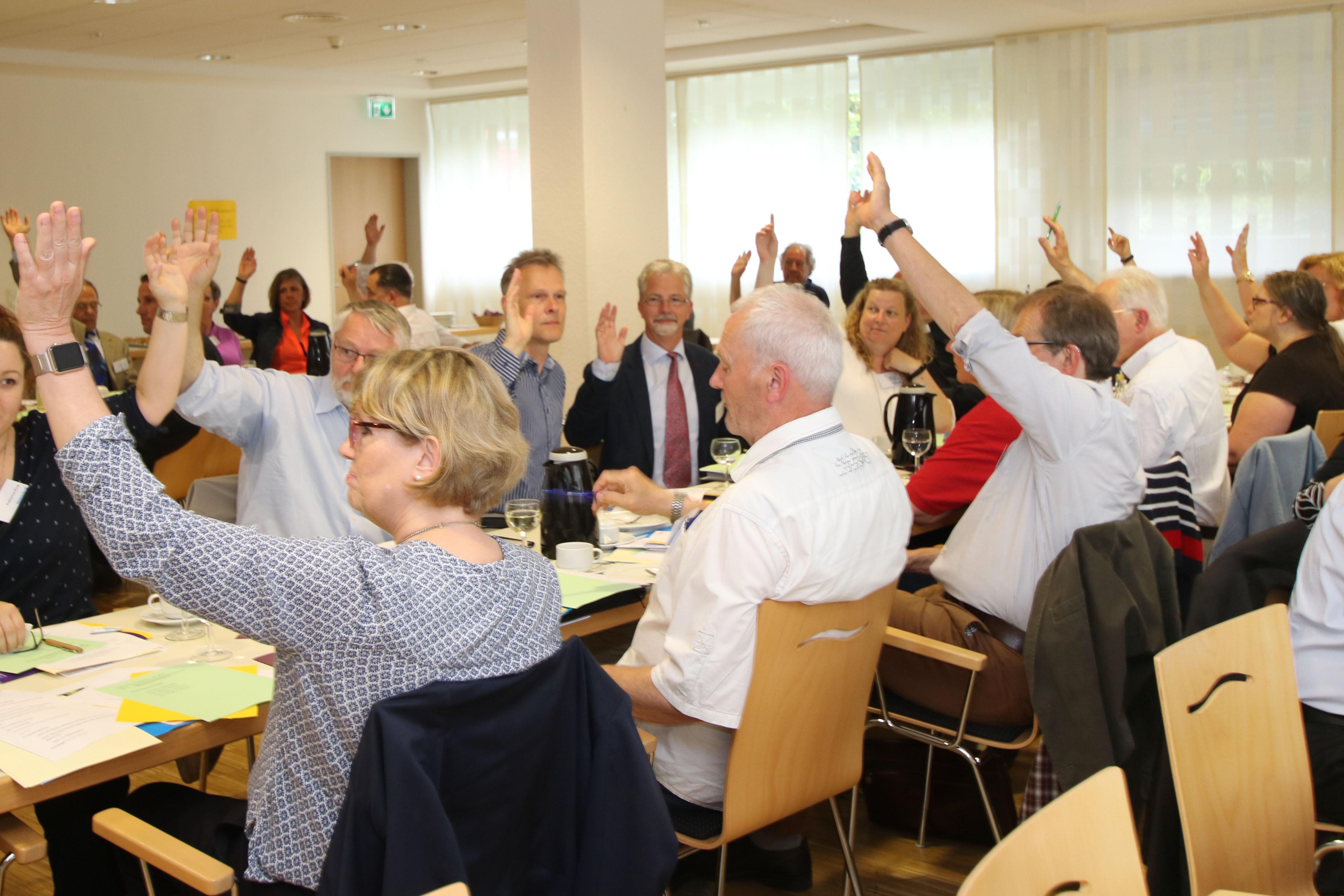 Oldenburg, 5.6.2019 – Die Delegierten der Diakonische Konferenz haben auf ihrer konstituierenden Sitzung das neue Präsidium gewählt. Neuer Vorsitzender des Präsidiums ist Diakoniepfarrer Ingmar Hammann aus der Wesermarsch. Zu seinen Stellvertretern wurden Friederike Meyer und Diakoniepfarrer Michael Winkel bestimmt, als Schriftführerinnen gehören dem Präsidium Marianne Brandt und Angelika Röben an. Hammann betonte bei seiner Vorstellung vor der Wahl, die Wichtigkeit der Diakonie im Oldenburger Land. Er wolle in den anstehenden Entscheidungen über die zukünftige Gestalt der Diakonie Flagge zeigen.