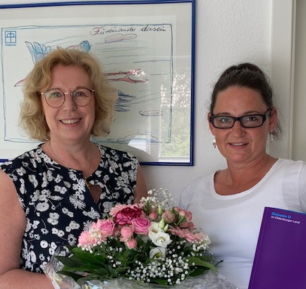 Gratulieren konnte Martina Fisser in dieser Woche auch Brigitte Hüstermann. Sie ist seit 10 Jahren die „gute Seele“ im Diakoniebüro Cloppenburg. Hüstermann nimmt die Klienten im Empfang, ist erster Ansprechpartnerin am Telefon, ist für die Abläufe im Hause zuständig und hat als besonderes Aufgabenfeld die Beratung für Familienerholung. In einer persönlich von den Kollegen und Kolleginnen organisierten Feier wurde Frau Hüstermann mit einer Urkunde und einem Großen Blumenstrauße „Danke“ gesagt.