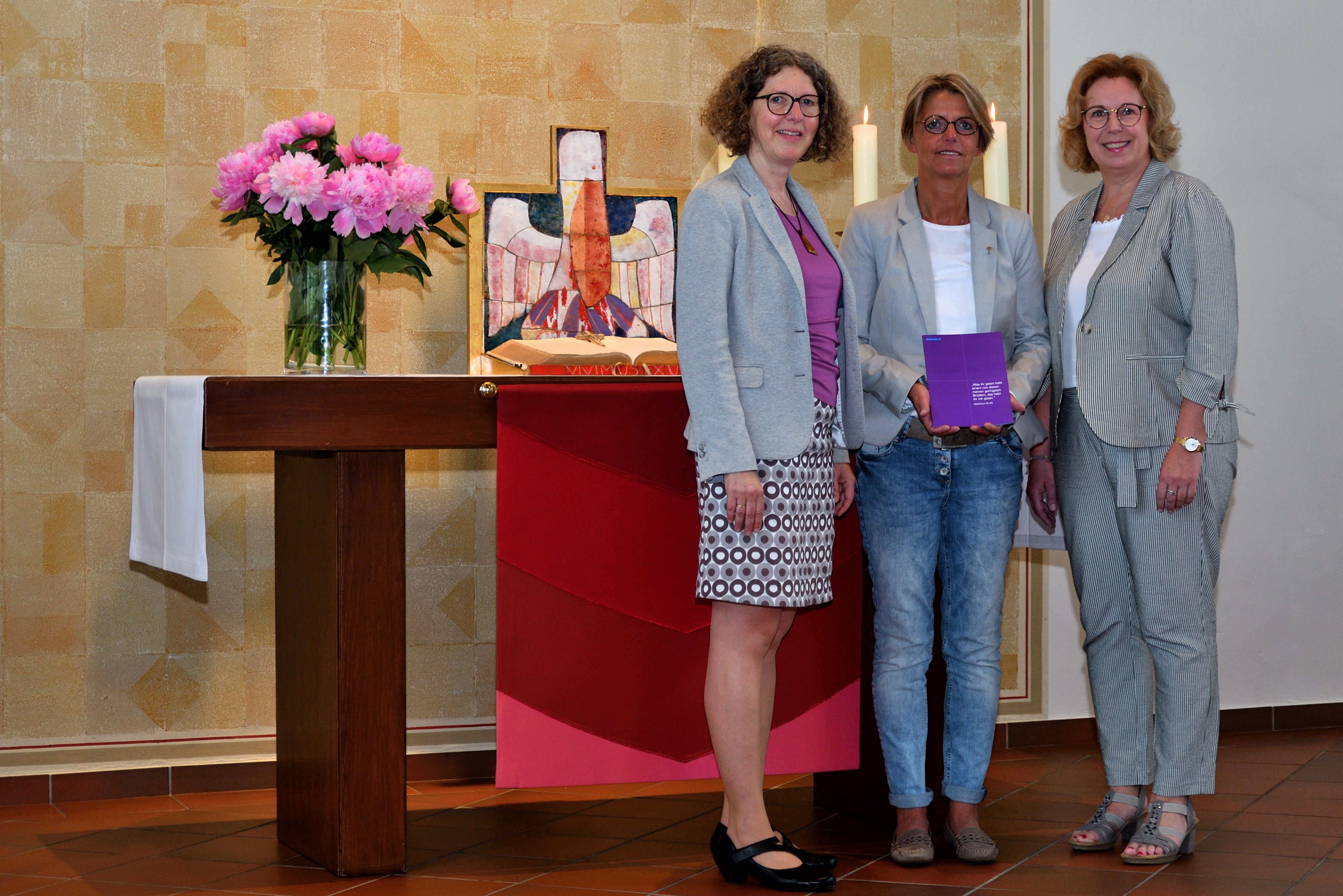 Seit 1995 ist Purk Mitglied im Diakonieausschuss des Kirchenkreises und seit langen Jahren im Vorstand des Diakonischen Werkes im Kirchenkreis tätig. „Dich um das Leben und die Sorgen der Menschen zu kümmern, das ist Dir ein Herzensanliegen, deshalb schlägt Dein Herz für die Diakonie“, sagte Wittkowski in seiner Ansprache. Im Anschluss an den Gottesdienst nahmen viele Gottesdienstbesucherinnen und – besucher die Gelegenheit wahr, den Jubilaren persönlich zu gratulieren und mit einem Glas Sekt auf sie anzustoßen. Zu den ersten Gratulanten gehörte Martina Fisser, Geschäftsführerin des Diakonischen Werkes im Oldenburger Münsterland.