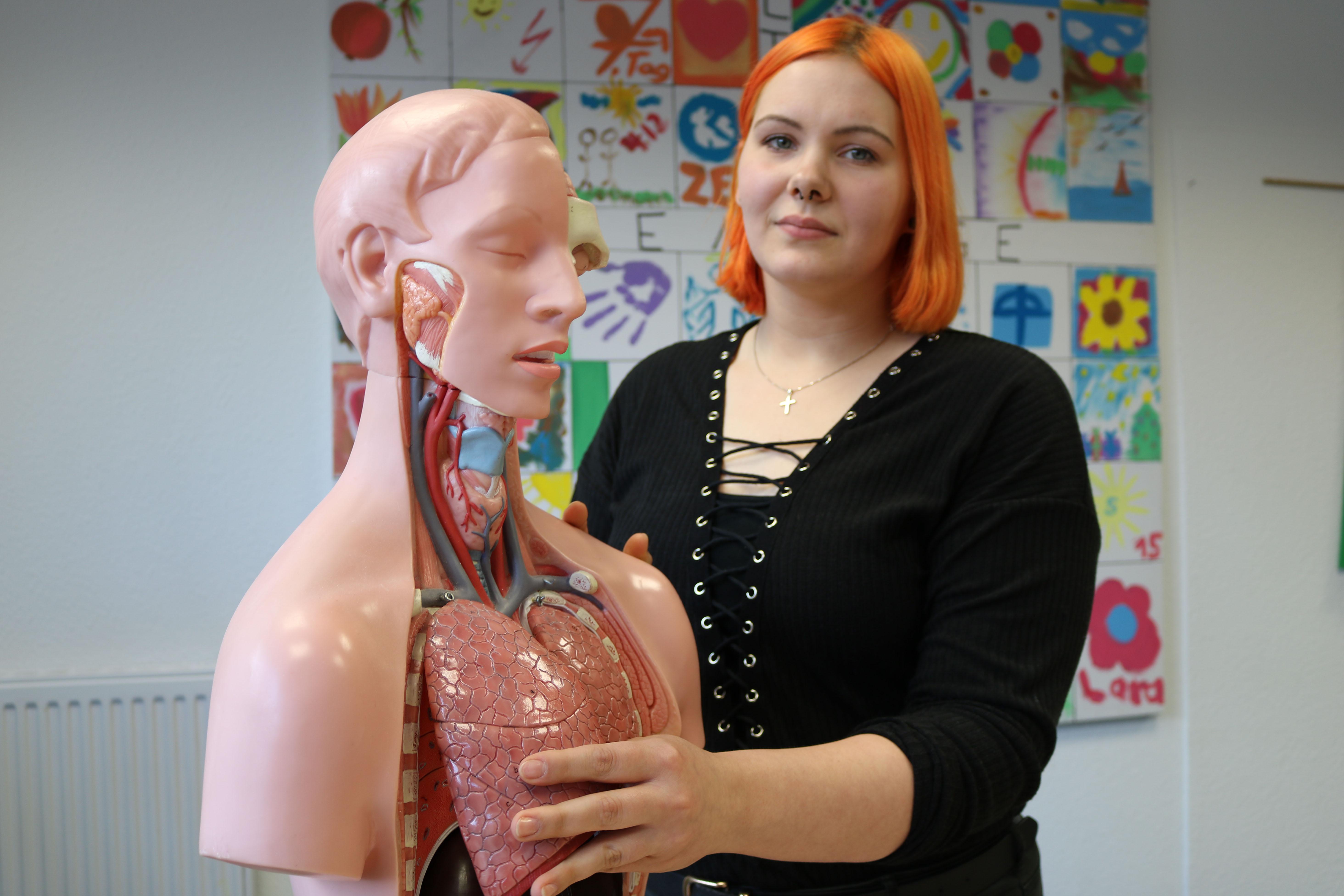Delmenhorst/Ganderkesee – Für die Pflege ist es wichtig, den Menschen auch von innen zu kennen. „Wir müssen Erkrankungen frühzeitig erkennen können“, berichtet Jessica Wilk. Mittlerweile ist die Altenpflegeschülerin, die regelmäßig aus dem Unterricht an der Ev. Altenpflegeschule in Delmenhorst und ihrer Praxisstelle im Seniorenheim Wichernstift in Ganderkesee berichtet, im zweiten Lehrjahr. Und sie merkt, sowohl in der Schule als auch in der Praxis wird der Stoff anspruchsvoller.