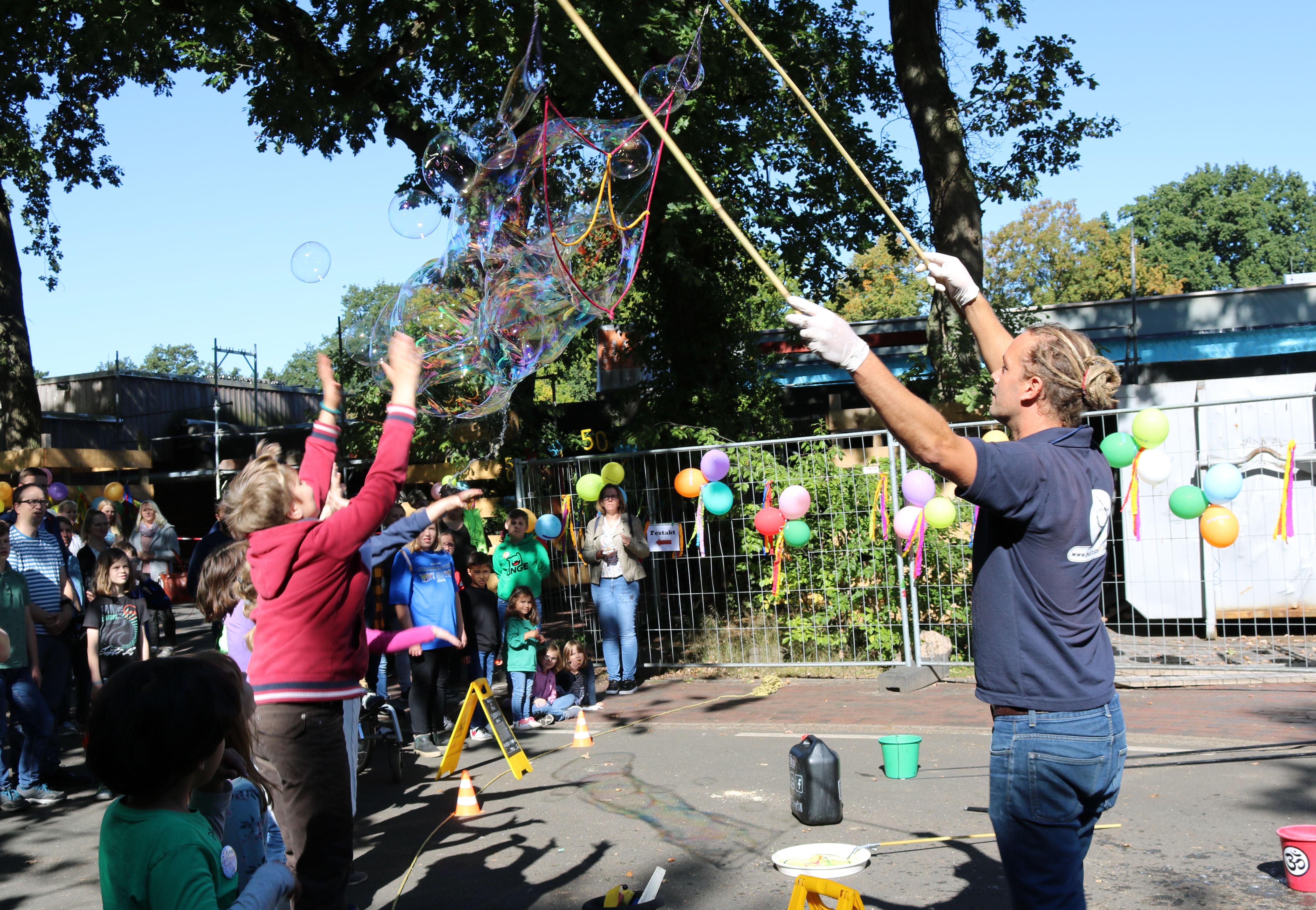 Nach dem Gottesdienst und dem Festakt zu Beginn der Jubiläumsfeier, standen wieder die Kinder im Mittelpunkt. Sie konnten sich an verschiedenen MItmach-Ständen ausprobieren und einen Seifenblasenkünstler zuschauen. Überall auf dem Gelände des PTZ gab es für die großen und kleinen Besucher etwas zu entdecken.