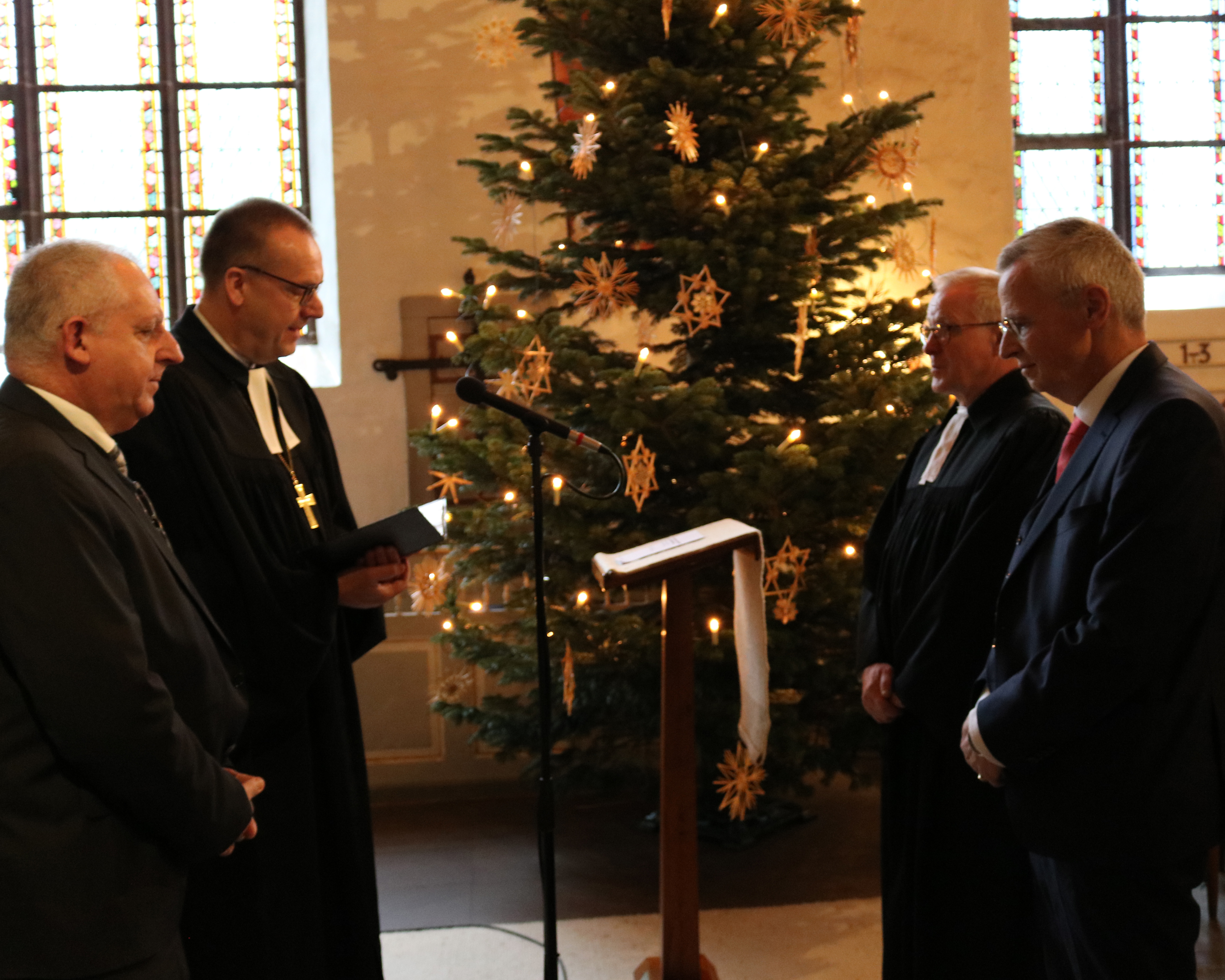 Bad Zwischenahn, 6.1.2024 - In einem feierlichen Gottesdienst hat Bischof Thomas Adomeit Pfarrer Thomas Feld und Uwe K. Kollmann als Vorstände der Diakonie im Oldenburger Land entpflichtet und ihnen im Namen der Ev.-Luth. Kirche in Oldenburg für ihren Dienst gedankt. Adomeit betonte: „Es war eine gute Zeit für das Diakonische Werk, liebe Brüder, Sie haben viele Dinge auf den Weg gebracht. Insgesamt würde ich sagen: Zuhören, Verstehen, Tun – dieser Dreischritt hat sie geleitet.“