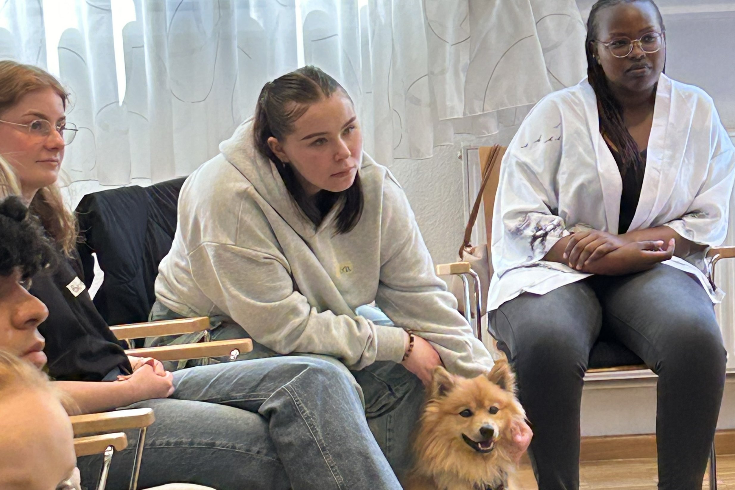 04.06.24 - Vanessa Kühling, pädagogische Mitarbeiterin bei der Jugendhilfe Collstede, hat bei einem Seminar des Freiwilligendienstes einen Vortrag über tiergestützte Therapie gehalten. An ihrer Seite war ihr treuer Begleiter Carlo, der derzeit zum Therapiehund ausgebildet wird.