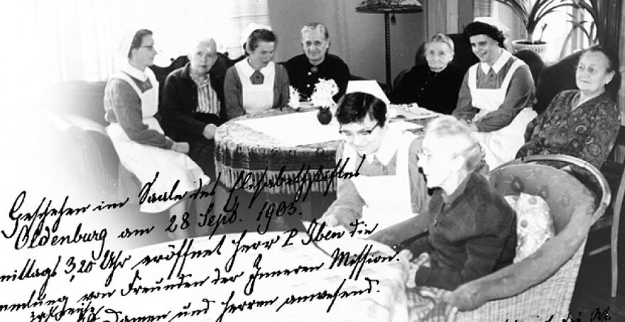 Der Gründung des Landesvereins für Innere Mission 1903 gehen seit 1892 Konferenzen voraus, die sich mit diakonischen Themen und Einrichtungen im Oldenburger Land beschäftigen. Es sind die sozialen Probleme der Zeit, die die Menschen beschäftigen. Es geht um sogenannte Arbeiterkolonien und Herbergen zur Heimat, die Wohnungslosen Obdach geben. Hollandgänger werden die Wanderarbeiter damals genannt, die während der Saison in der Fremde arbeiten gehen müssen. Es geht um die Fürsorge für Strafgefangene, um Krankenhäuser, Fürsorge für Arbeitslose, Flussschiffer und Seemannsmission. Diakonissen, die die Pflege kranker und alter Menschen in den verschiedenen Einrichtungen übernommen haben, verfügen im Elisabethstift seit 1889 über ein eigenes Mutterhaus.